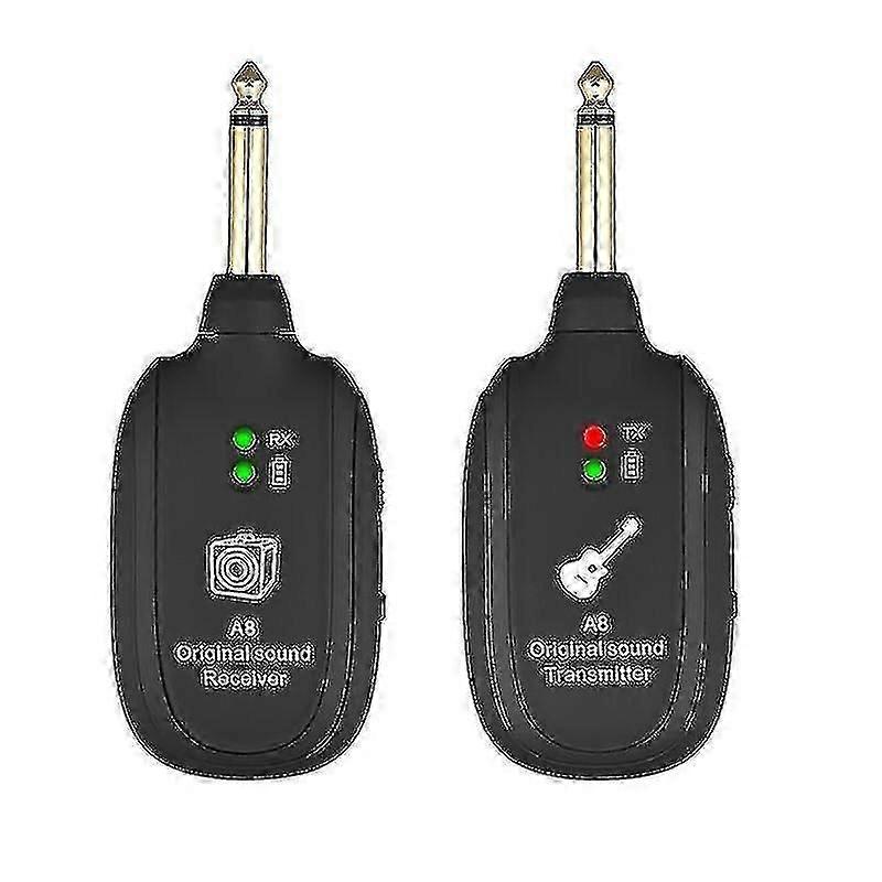 4 sets of devices can work with the guitar wireless sound system at the same time. Plug and Play, start your playing in seconds Wireless transmitter and stereo receiver for electro-acoustic musical instruments like guitar, bass, etc. USB charging will bring you much more convenience . Built-in 3.7V 600mAh rechargeable lithium battery, the working time of UHF guitar wireless system is up to 6 hours 20Hz-20kHz guitar wireless system is designed not only for guitar and bass, but also for violin drum and other electronic musical instruments Easy to use wireless guitar transmitter and receiver, perfect for any pedal board. Premium plastic made, can withstand many bad situations