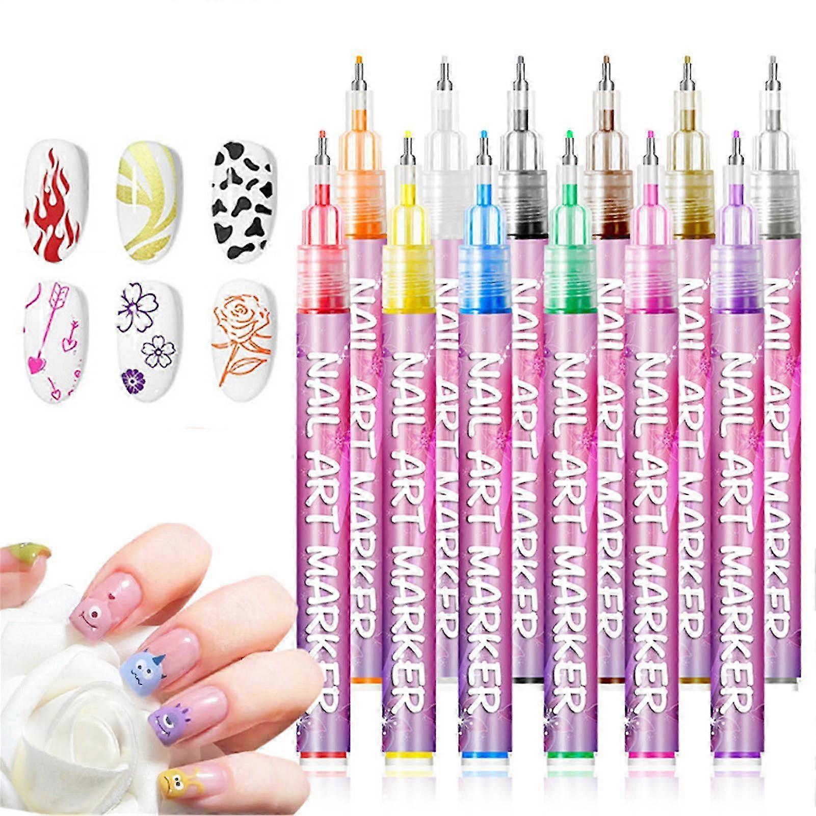 12 Colors Acrylic Nail Art Pen Set, DIY 3D Nail Marker Gel Polish Pens
