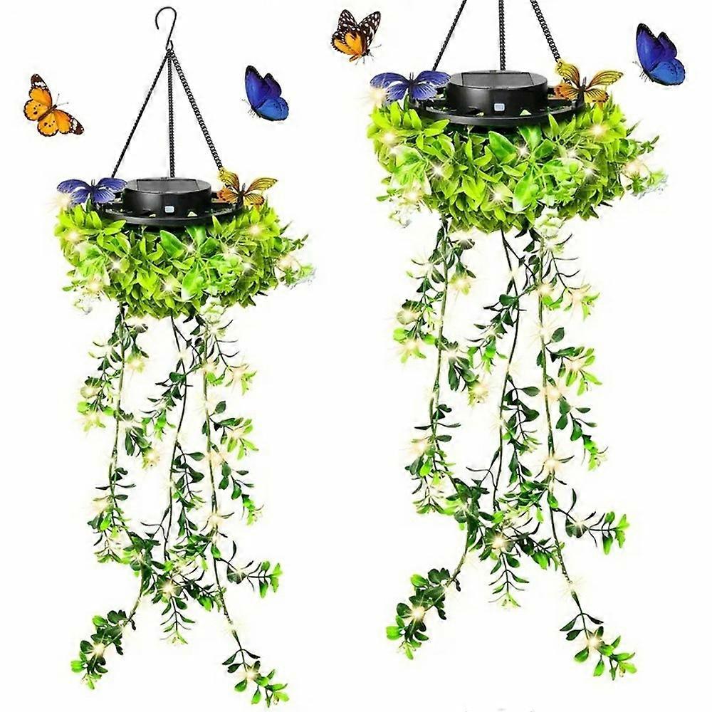 2Pcs Outdoor Solar Ivy Lights IP65 Waterproof Artificial Hanging Plant for Balcony Garden Decor