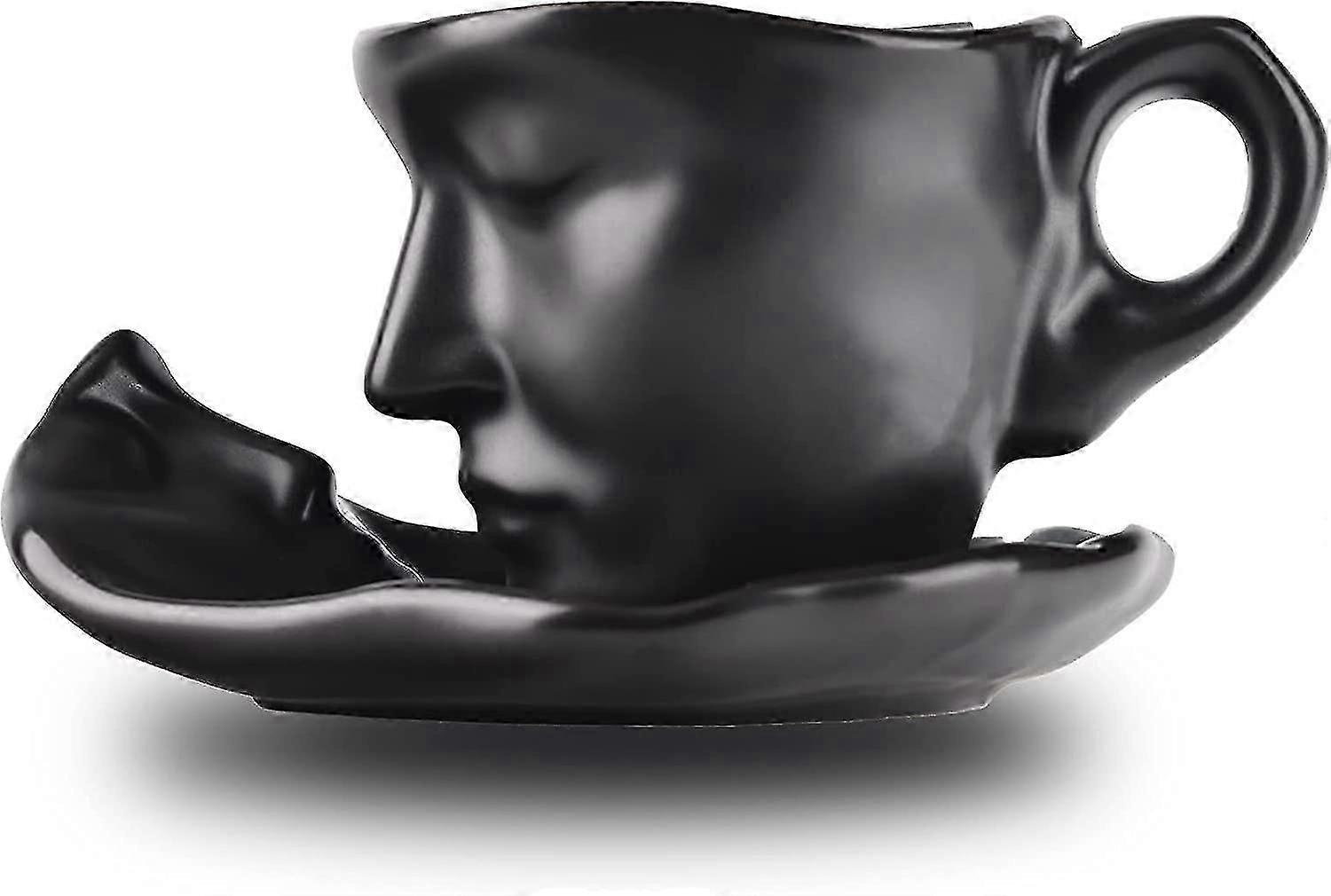 Ceramic Tea Cup and Saucer Set with Kissing Couple Design, Includes Spoon for a Romantic Valentine's or Christmas Gift