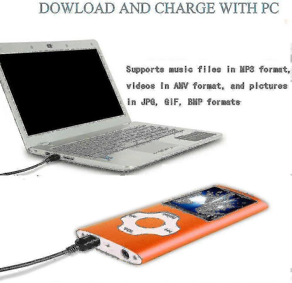Mp3 Music Player With 64gb/ 32gb/16gb Memory Sd Digital Lcd 1.82''orange -8GB Mp3 Player / Mp4 Player