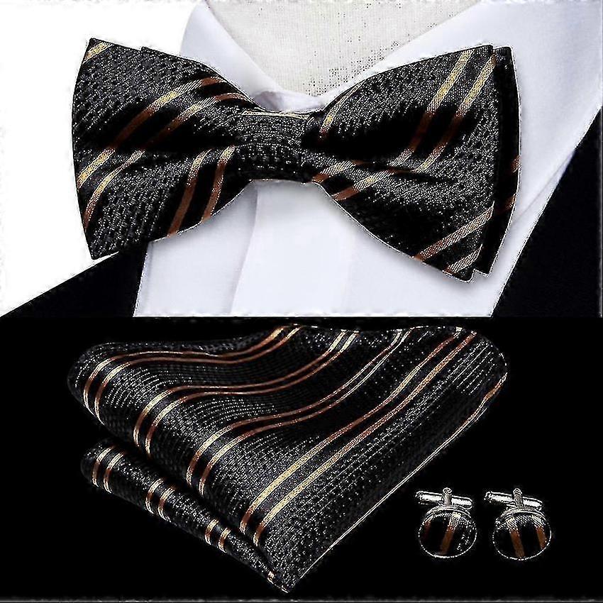 Silk Mens Bow Tie Set with Cufflinks Jacquard Floral Pre Tied Butterfly Bowtie For Wedding Business Yvan