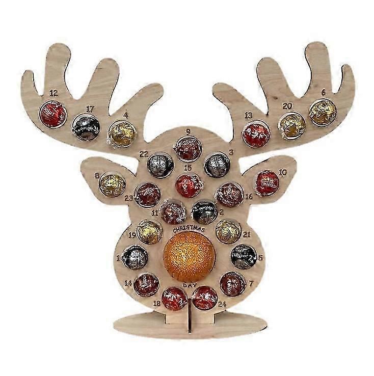 Wooden Christmas Advent Calendar with Deer Head Design and 24 Holes for Chocolates, UK Party Decoration