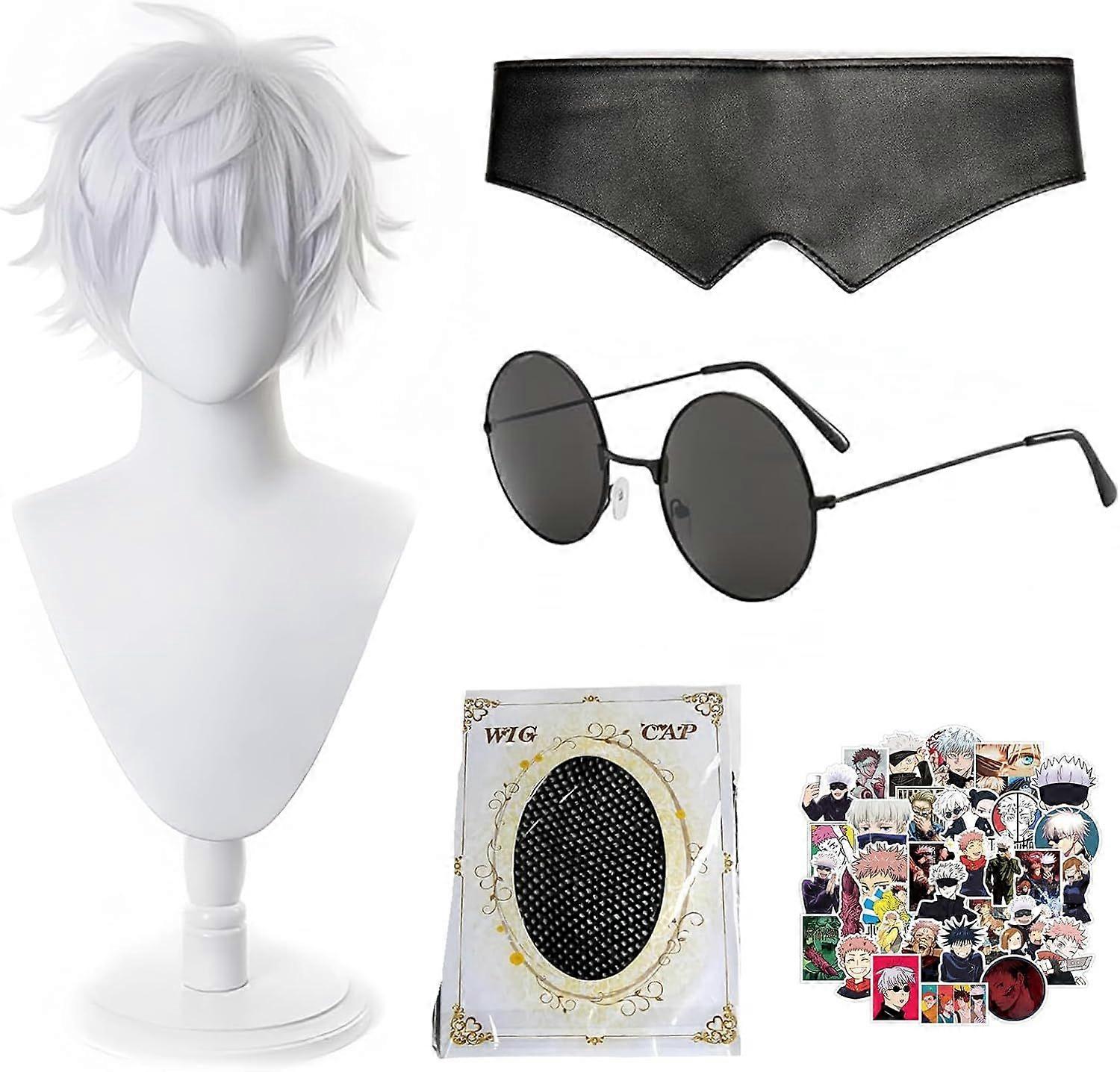 JinYu Jujuts Kais Cosplay Wig Goj. Sator Costume Wig with Black Glasses Black Eye Mask & Stickers for Cosplay Show