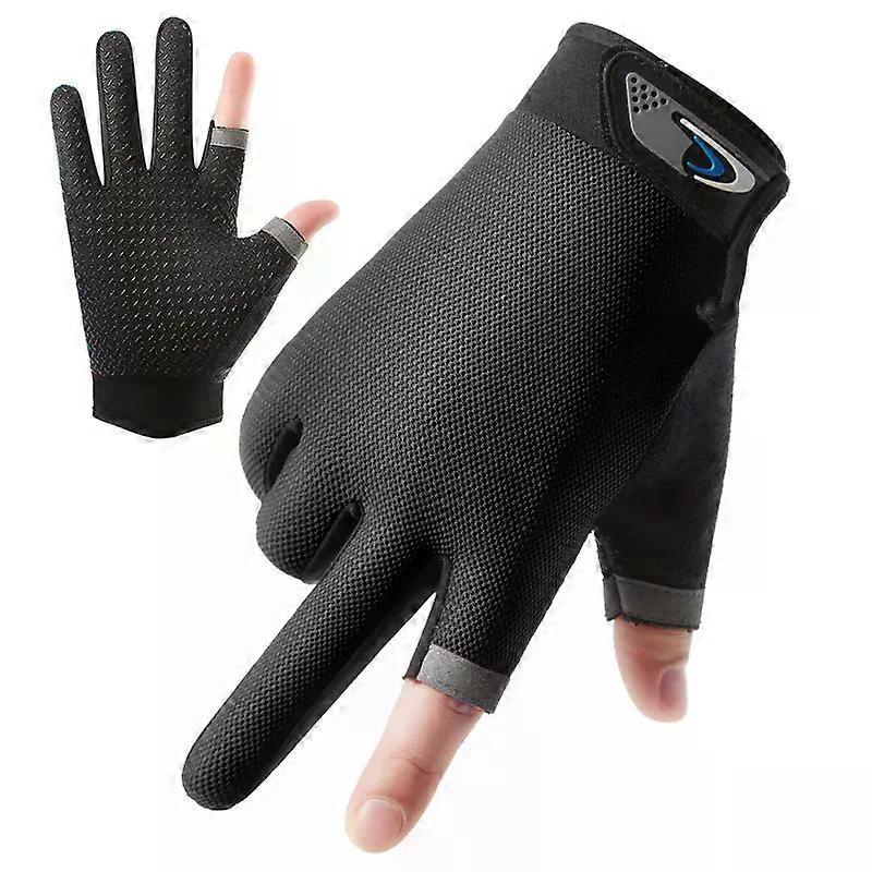 unique Men's Two-finger Gloves Popular Ice Silk Thin Breathable Cycling Gloves Half-finger Anti-wear Driving Gloves Fishing Gloves