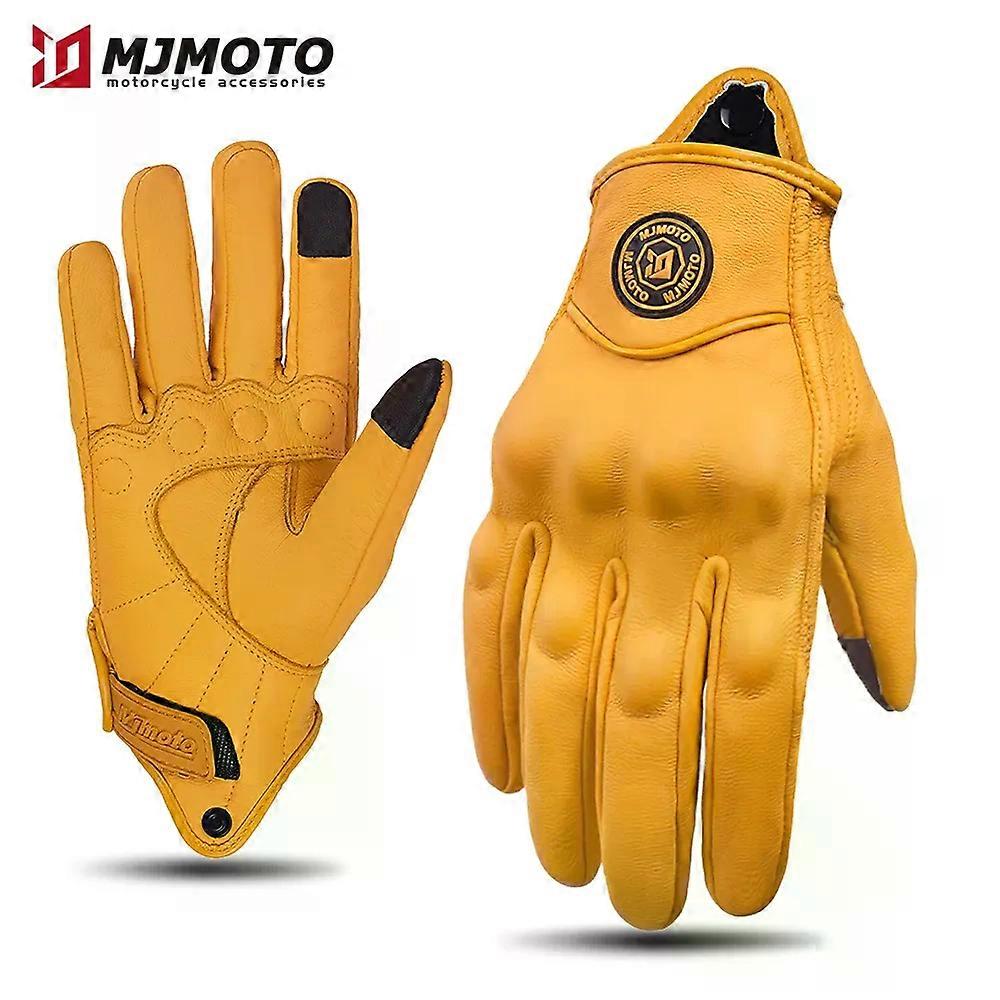 unique Retro Yellow Leather Motorcycle Gloves Men Women Breathable Perforated Motorbike Racing Gloves Touch Screen Motocross Moto Glove