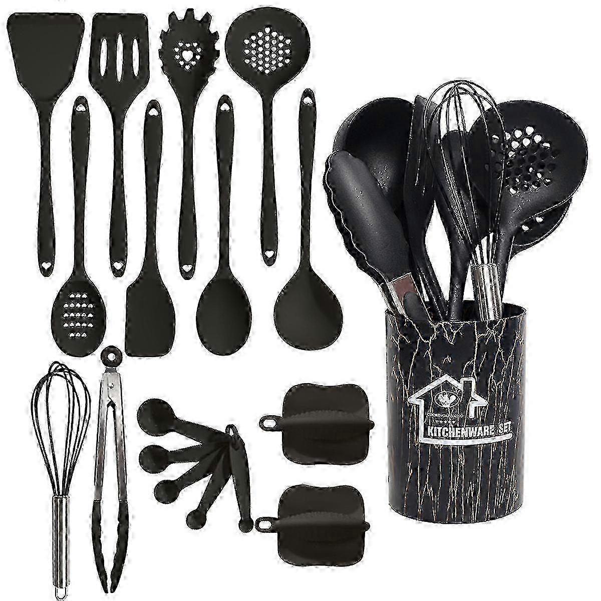 18pcs/set, Silicone Kitchen Utensils Set With Storage Bucket, Heat Resistant Cooking Utensils Set, Non-stick Silicone Kitchen Spatula And Spoon, miao7