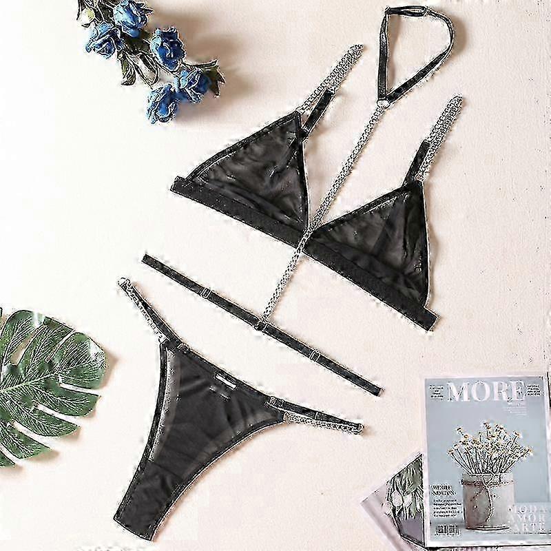 Sexy Metal Sleeve Neck Belt Hot Perspective Embroidery Adjustable Low Waist Temptation Free Three-Point Suit miao7