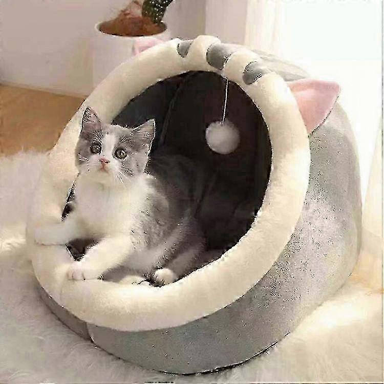 Indoor Cat Beds with Anti-Slip Bottom, Rabbit-Shaped Small Dog Cave with Hanging Toy, Kitten Tent House with Removable Cotton Pad2025