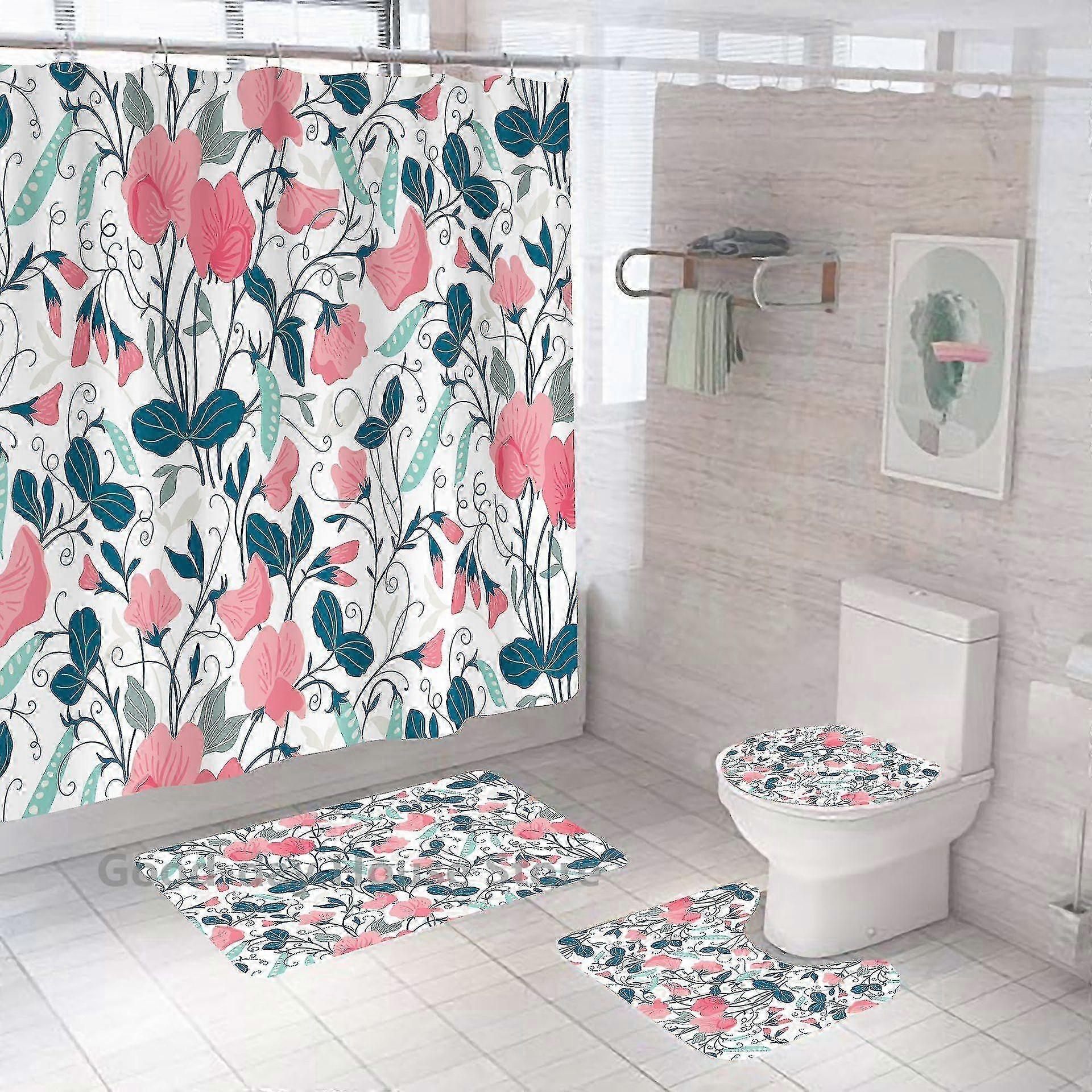 Purple Rose Flowers Shower Curtain Bathroom Curtains Set Butterfly Flower Bath Mats Toilet Lid Cover Anti-slip Carpet Home Decor miao7