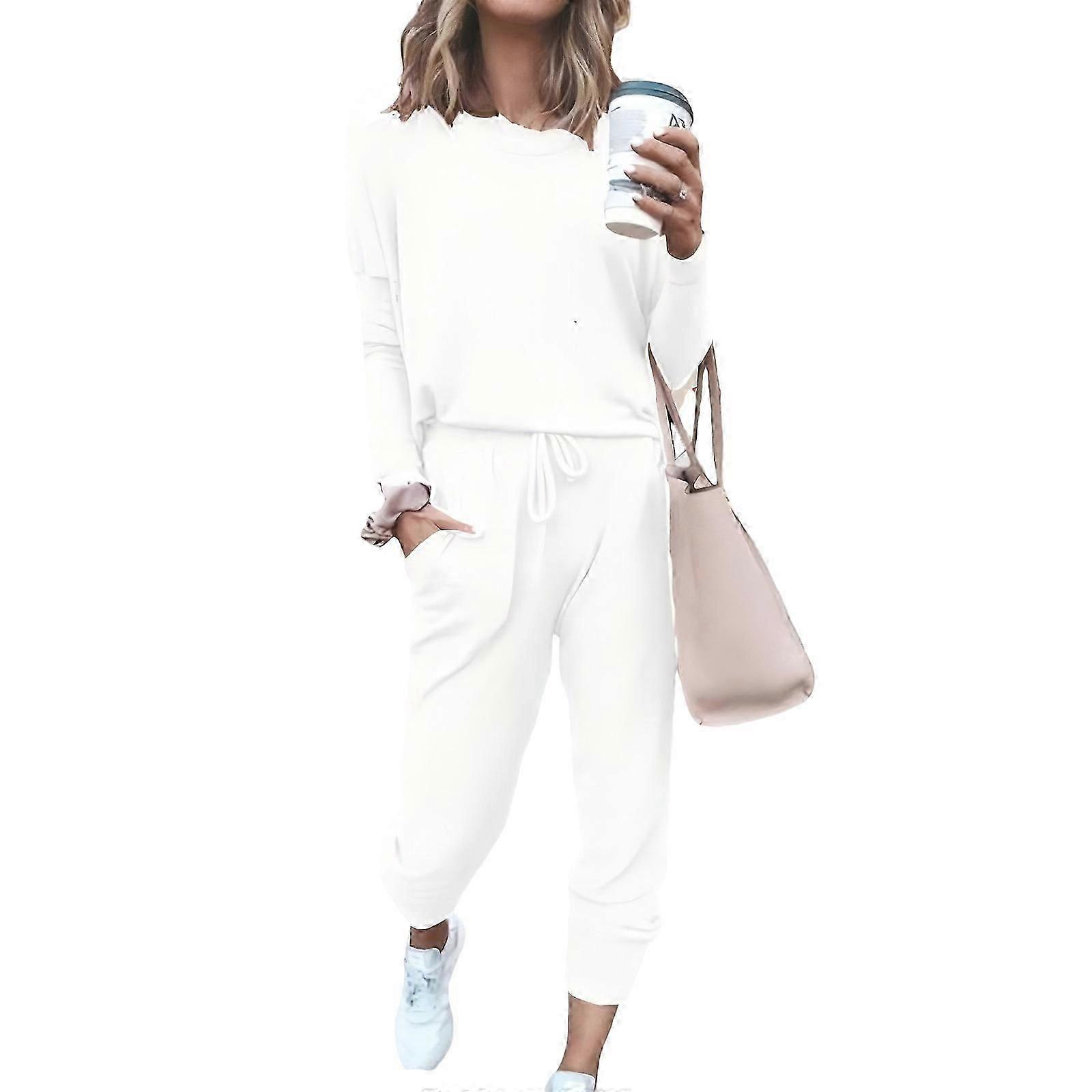 Comfortable Two Pieces Women's Outfit Long Sleeve Shirt And Casual Harem Pants Set Matching Activewear Sets White Xl