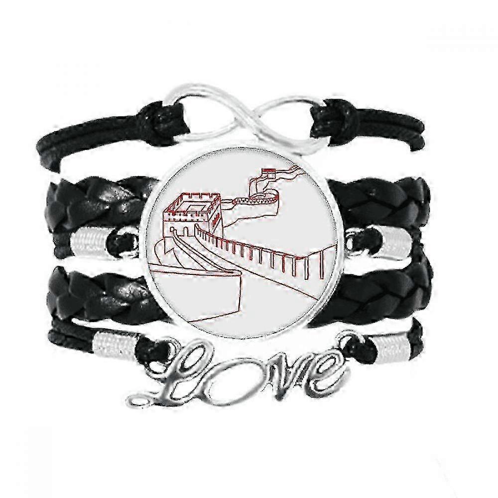 red the great wall pattern china bracelet love accessory twisted leather knitting wristband miao7