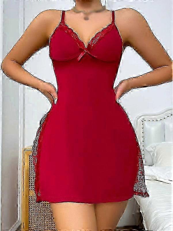 Women's Soft Lingerie Sexy V-Neck Low-Cut Nightgown Milk Silk Sleepwear Lace Babydoll Chemise Side Slit Nightie Erotic Backless Nightdress miao7