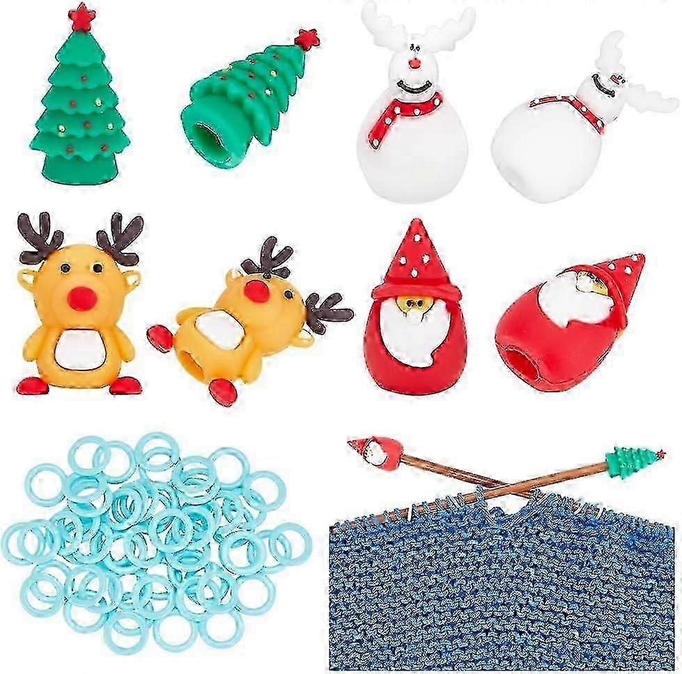 68Pcs Knitting Tool Kit 8Pcs Christmas Theme Silicone Knit Knitting Needles Point Protectors 60Pcs Plastic Knitting Stitch Marker Rings for Knit miao7