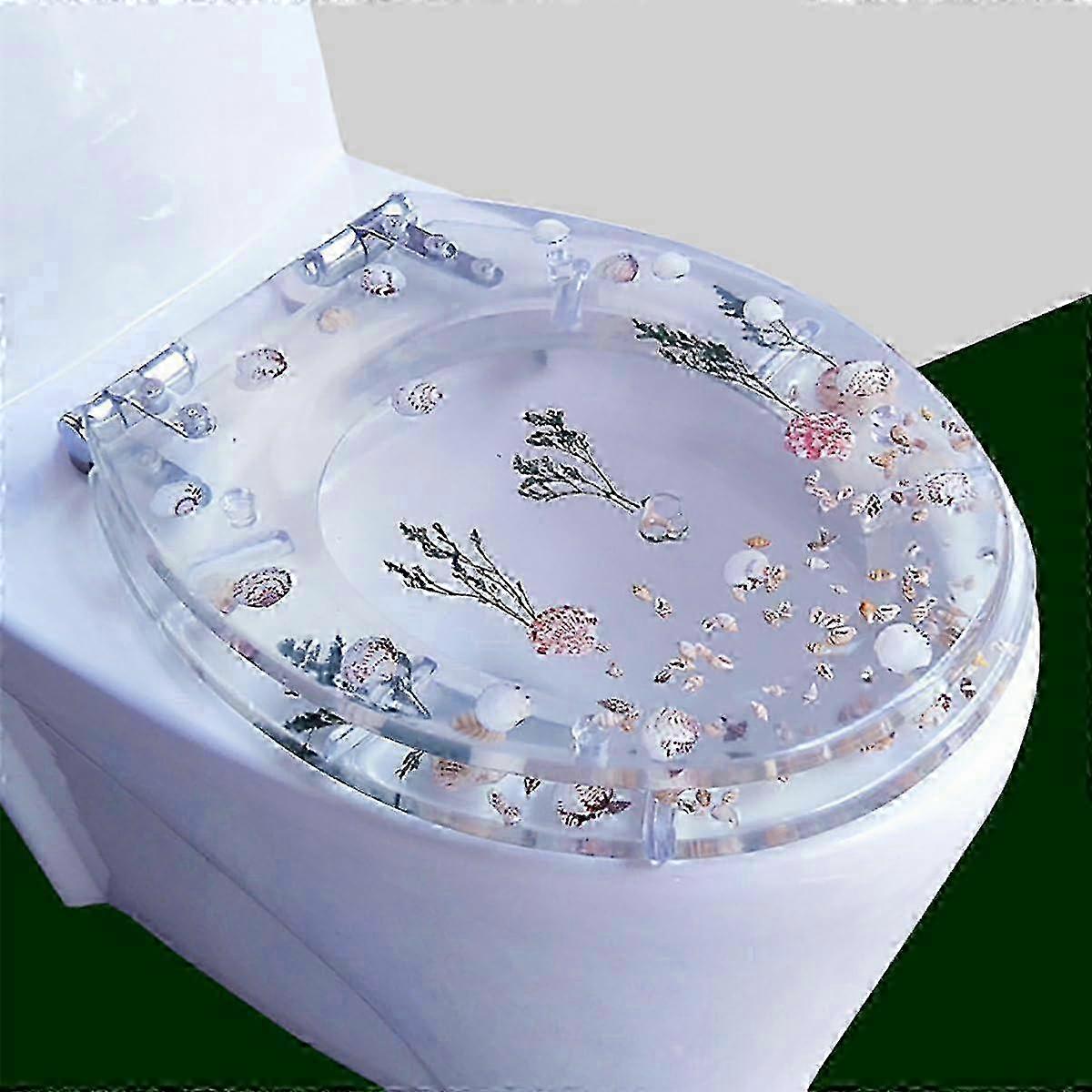 Resin Toilet Seat, Slow Close Toilet Seat with Transparent Shell Cover and Stainless Steel Hinges, Acrylic Toilet Lid, Ocean Series, A miao7