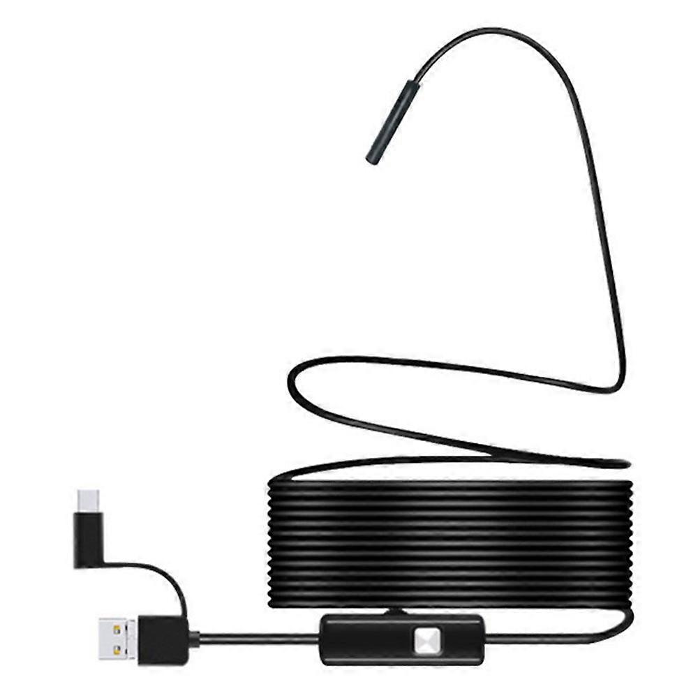 5m Flexible Wire Type-C+USB+Micro USB Endoscope 7mm Camera Industrial Borescope for OTG Phone, Tablet