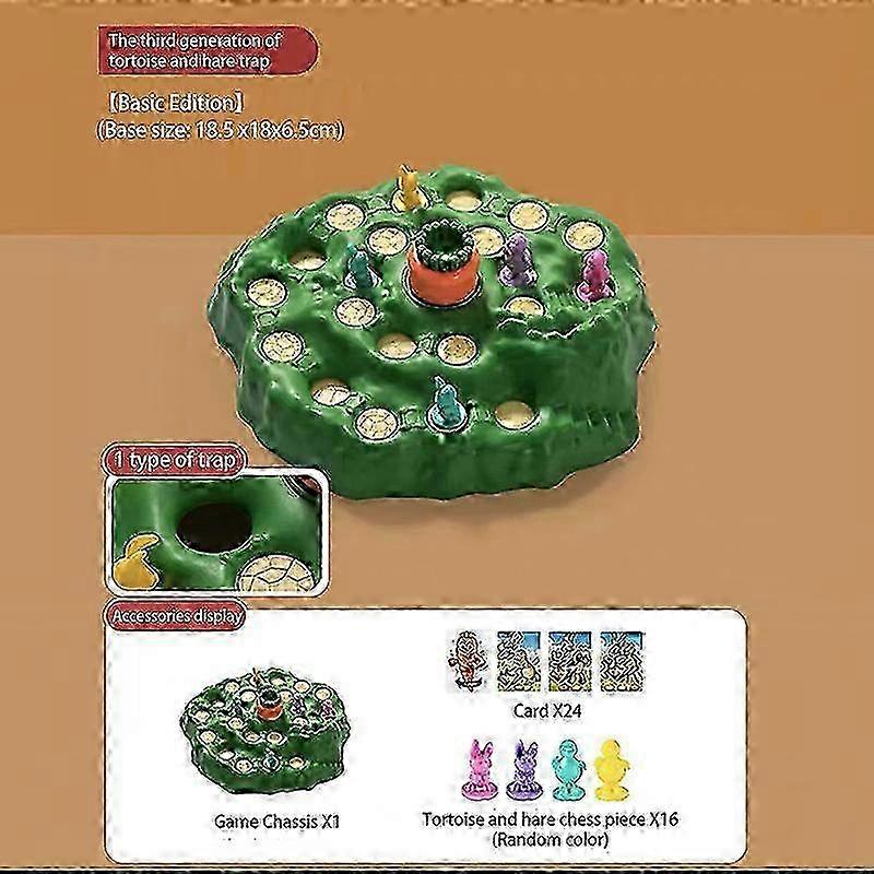 Description Kids Board Game 2-4 Players Funny Bunny Rabbit Trap Game Toy Rabbit Cross Country Race Featuer: Fun Gaming Experience: You can play a game in 20 minutes for 2-4 players, making it a perfect gift for families who love playing board games together Easy to Understand Instructions: , easy to understand instructions to start playing immediately. Great Value - Strategically use one or more bunnies to race around the board and be the first person to visit the giant carrot. Plan your routes and think ahead to win. Each game is unique, making it fun to play again and again Specifications: Material: Plastic Packaging: 1 Set Size: As picture Applicable age: 3and  Note: 1. The color of the item may be slightly different from the pictures shown on website caused by many factors such as brightness of your monitor and light brightness. Please refer to the actual product received. 2. Please allow slight manual measurement deviation for the data. Note: Due to the light and screen setting difference, the item's color may be slightly different from the pictures. Please allow slight dimension difference due to different manual measurement.