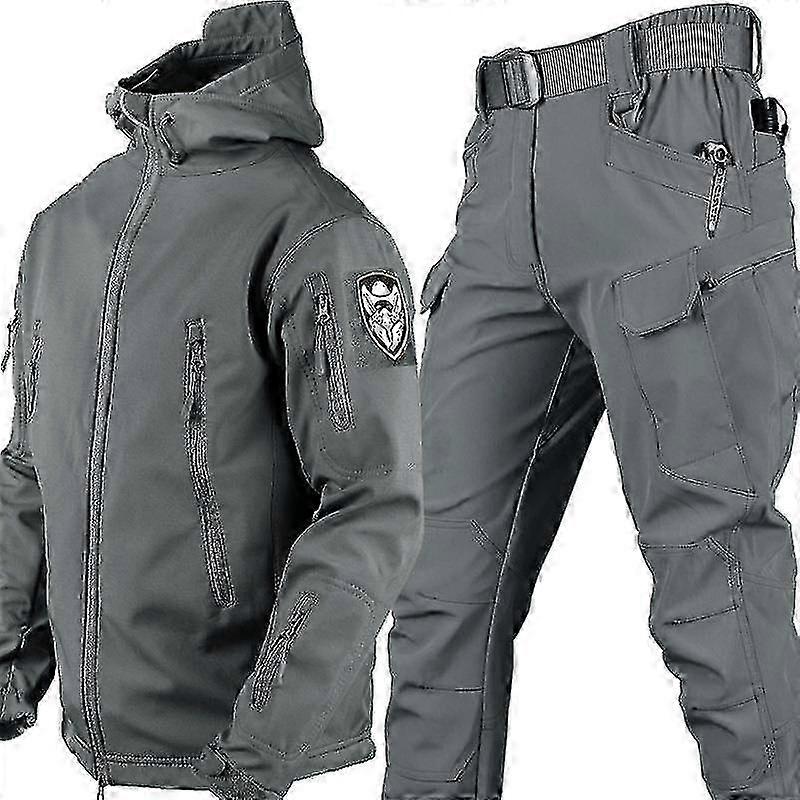 Men's Autumn and Winter Soft Shell Plus Size Outdoor Warm Suits Cold-proof and Warm Plus Velvet Thickened Clothing Jackets and Cargo Pants miao7