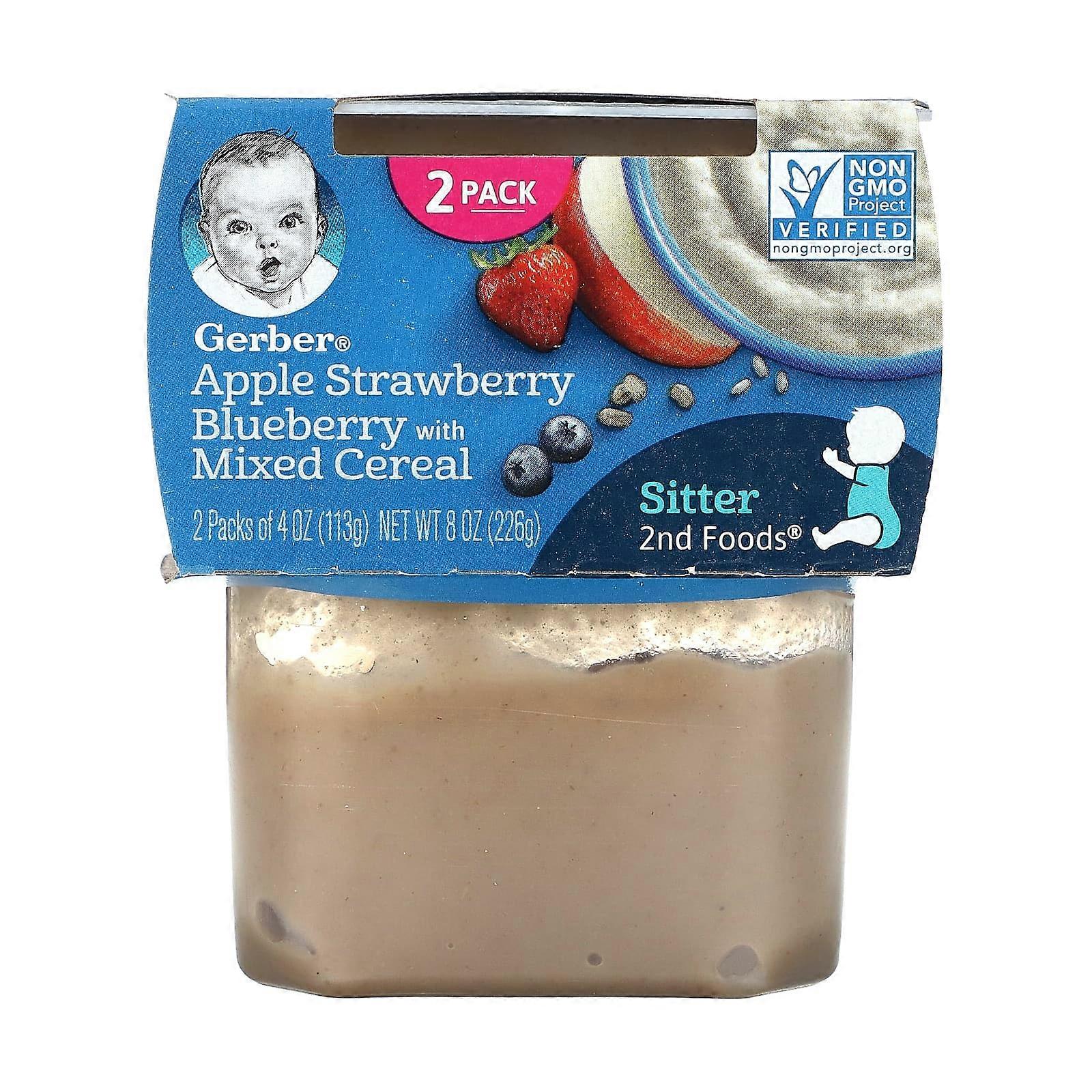 Apple Strawberry Blueberry with Mixed Cereal, 2nd Foods, 2 Pack, 4 oz (113 g) Each