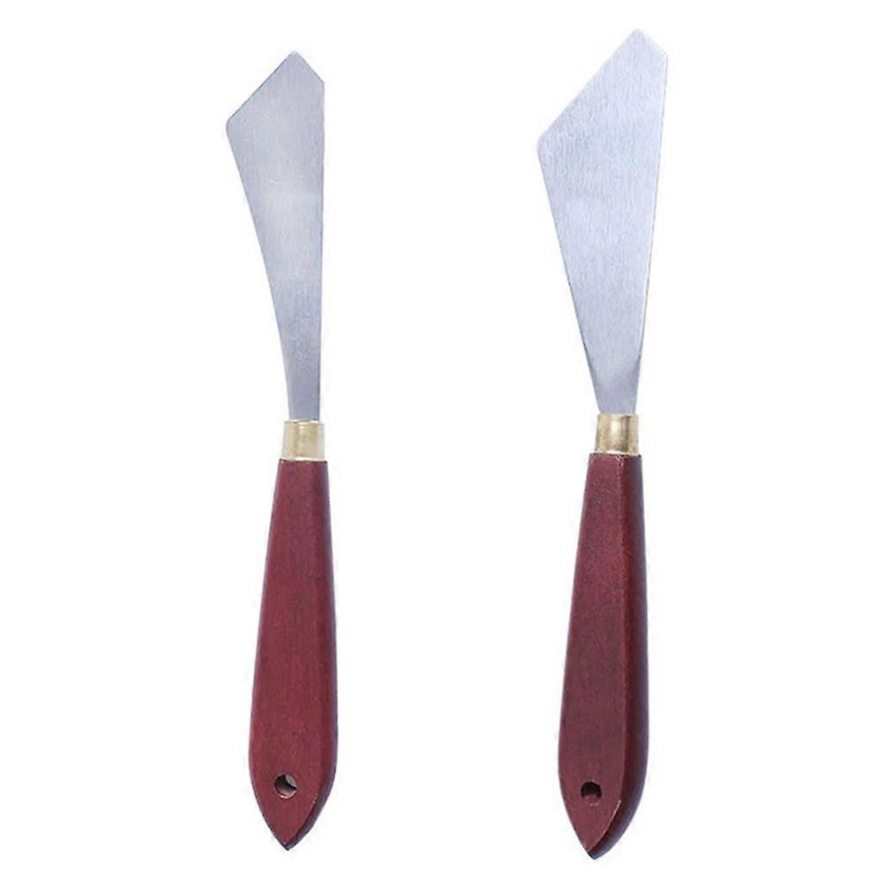2Pcs / Set Oil Painting Wooden Handle Metal Scraper Pigment Mixing Scraper Artist Crafts Tool