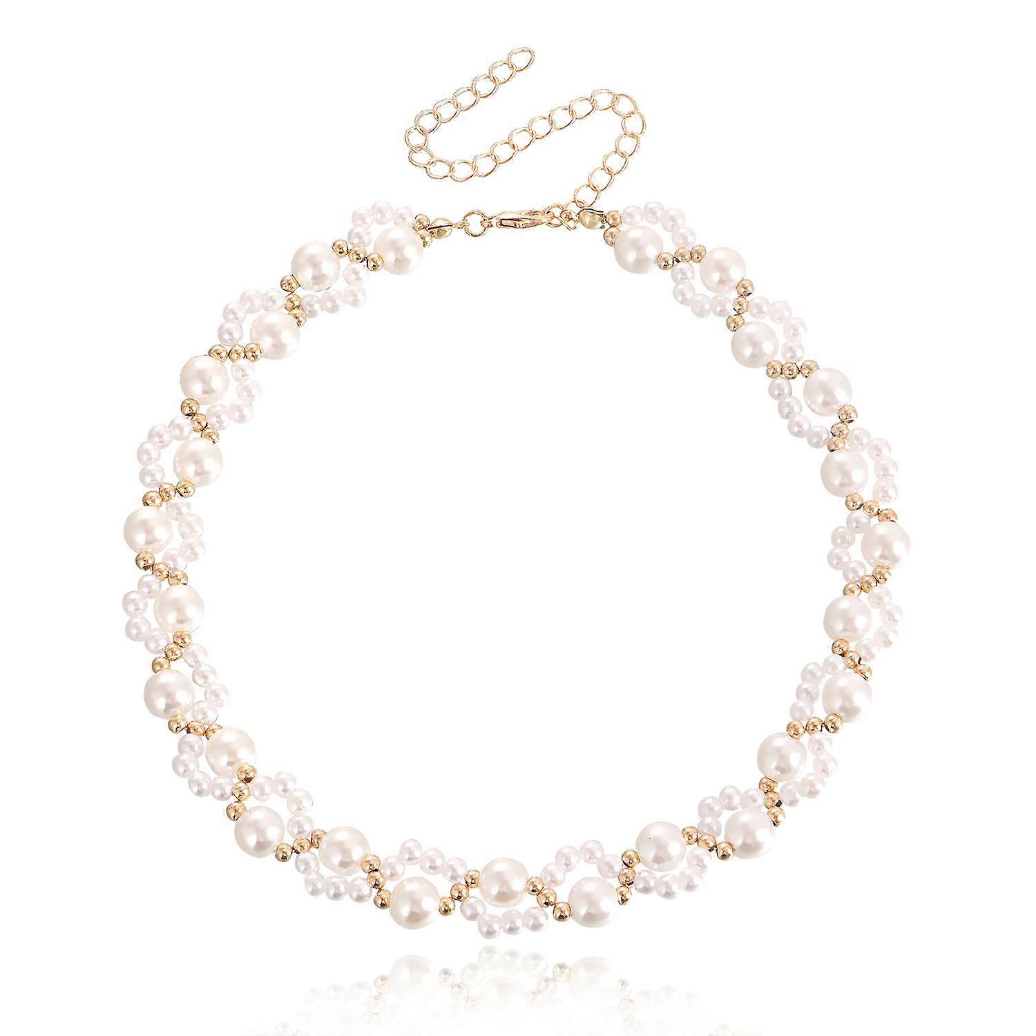 Jewelry Set, Handmade Woven Imitation Pearl Necklace Bracelet Choker, Women's Versatile Ins Style Jewelry