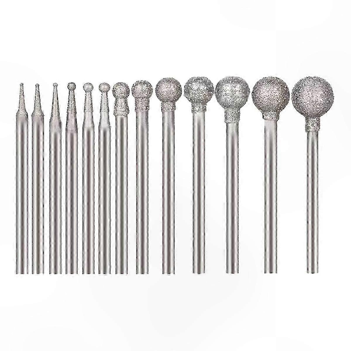 13-Piece Diamond Coated Ball Burrs Set for Stone Carving and Grinding, 3/32 Inch Shank