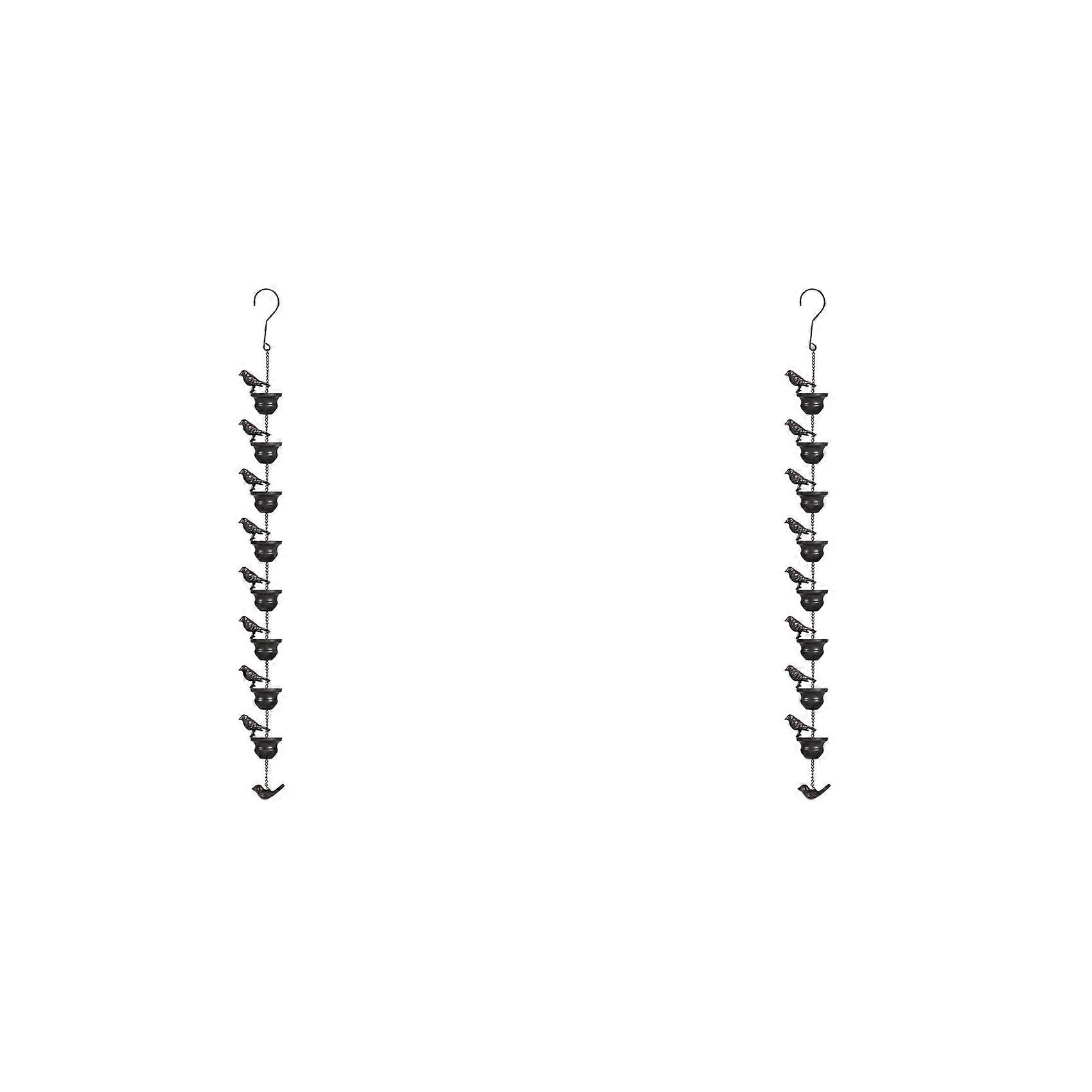1.Household fall chain: This rain chain features bowls connected by chains that create a beautiful waterfall effect as they direct water to the bottom. The open-bottomed cup acts as a funnel, allowing water to flow smoothly and quietly. 2.Beautiful Bird Design: This rain chain features 8 metal birds with a dark bronze finish that add a charming touch to your garden or patio. it features creative birds to create a lively scene. 3.Balcony decoration: Enjoy the soothing sound and sight of water flowing down this rain chain, which adds sophistication to your porch, balcony, courtyard or garden. 4.Easy installation: Hang the hook on the sink and enjoy the rain chain without any tools required. It's easy to move and a convenient decoration for your kitchen or bathroom. 5.Housewarming gift: This rain chain is a functional device to channel rainwater. Whether you want to celebrate a housewarming, impress your guests, or treat yourself to a wonderful gift, this rain chain is a perfect choice for any occasion. Add charm and beauty to your balcony with this rain chain. This convenient decoration features a bird design and a chain length of 7.8 feet. It's also a perfect holiday gift for your loved ones. Product: Bird Rain Chain Size: 2.4m/7.87ft Colour:Black Material:iron Package Contents: 2 x Bird rain chain