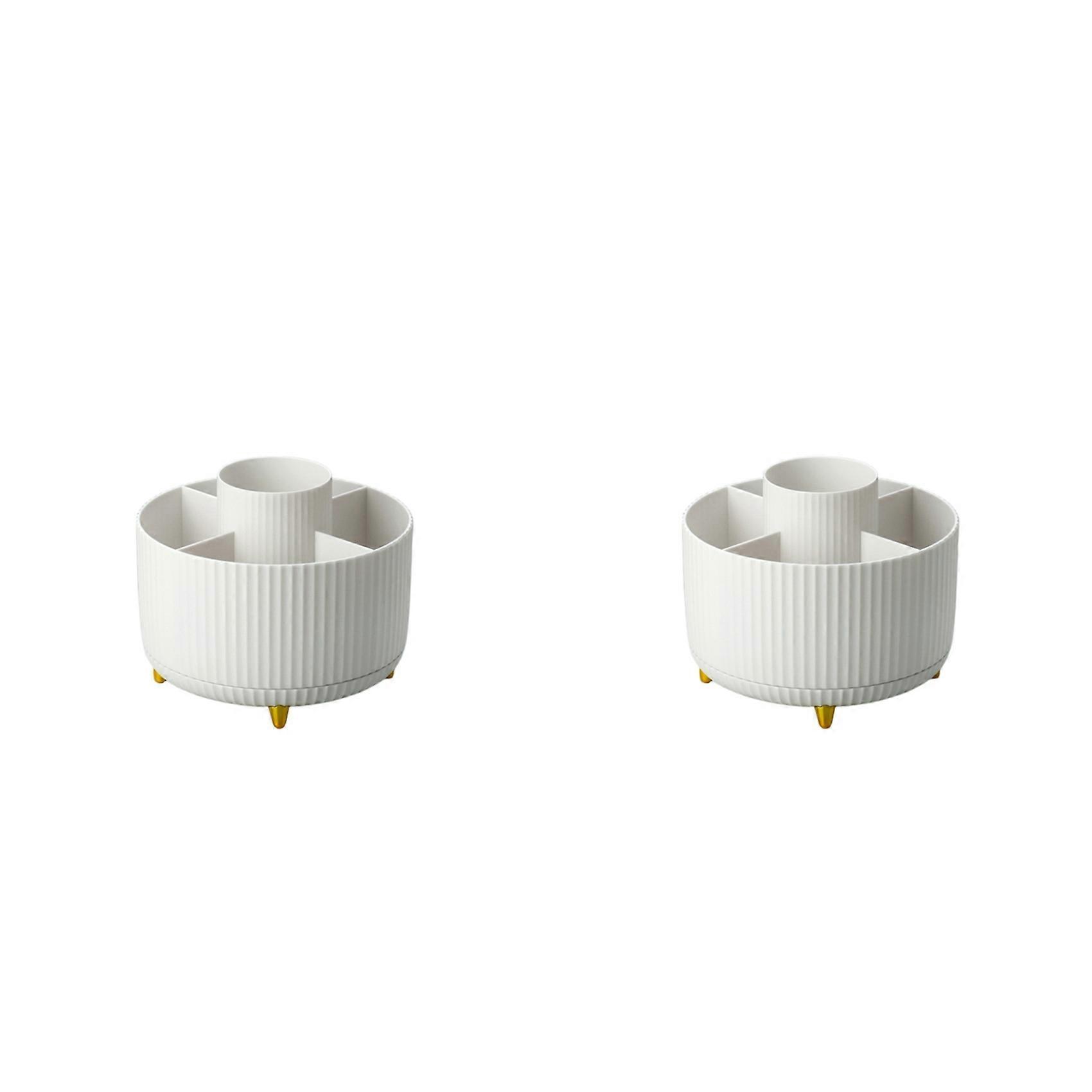 2X Desk Pencil Pen Holder 360° Rotating for Desk Storage Stationery Supplies Organizer Pencil Cup - White