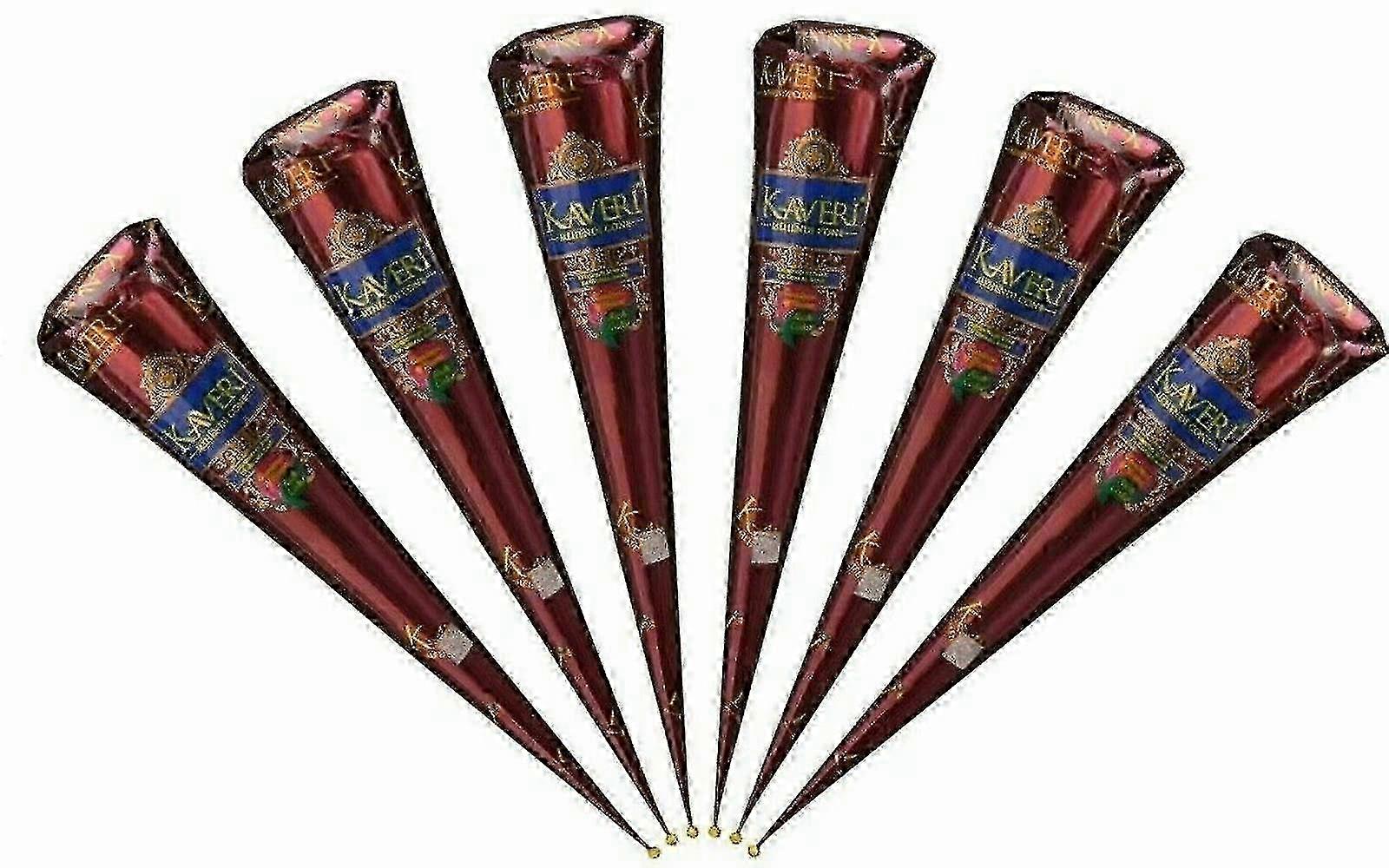 6pcs Natural Henna Mehndi Cones for Kaveri Dark Brown Temporary Tattoos - Set of 6
