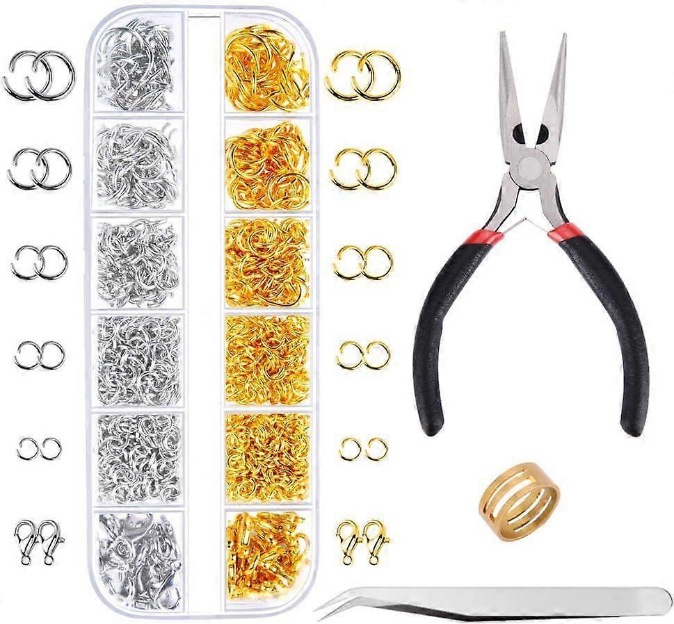 1200Pcs Jump Rings Jewelery Making Supplies Paxcoo Necklace Repair kit with Open Jump Ring Lobster Clasps Needle Nose Plier and Tweezer Jewelry Findin