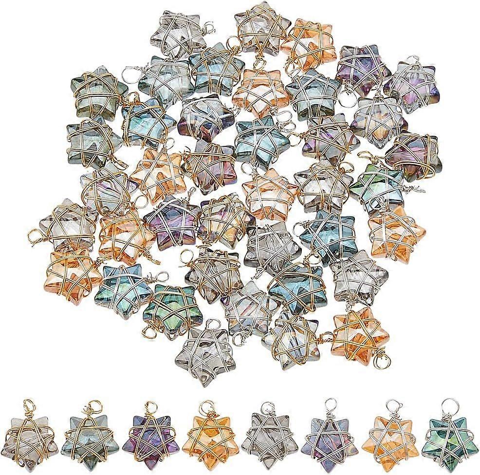 40Pcs Glass Star Charms Wire Wrapped Star Pendants AB Color Electroplate Glass Charms Mixed Color Crystal Dangle Charm for Earring Bracelet Necklace J