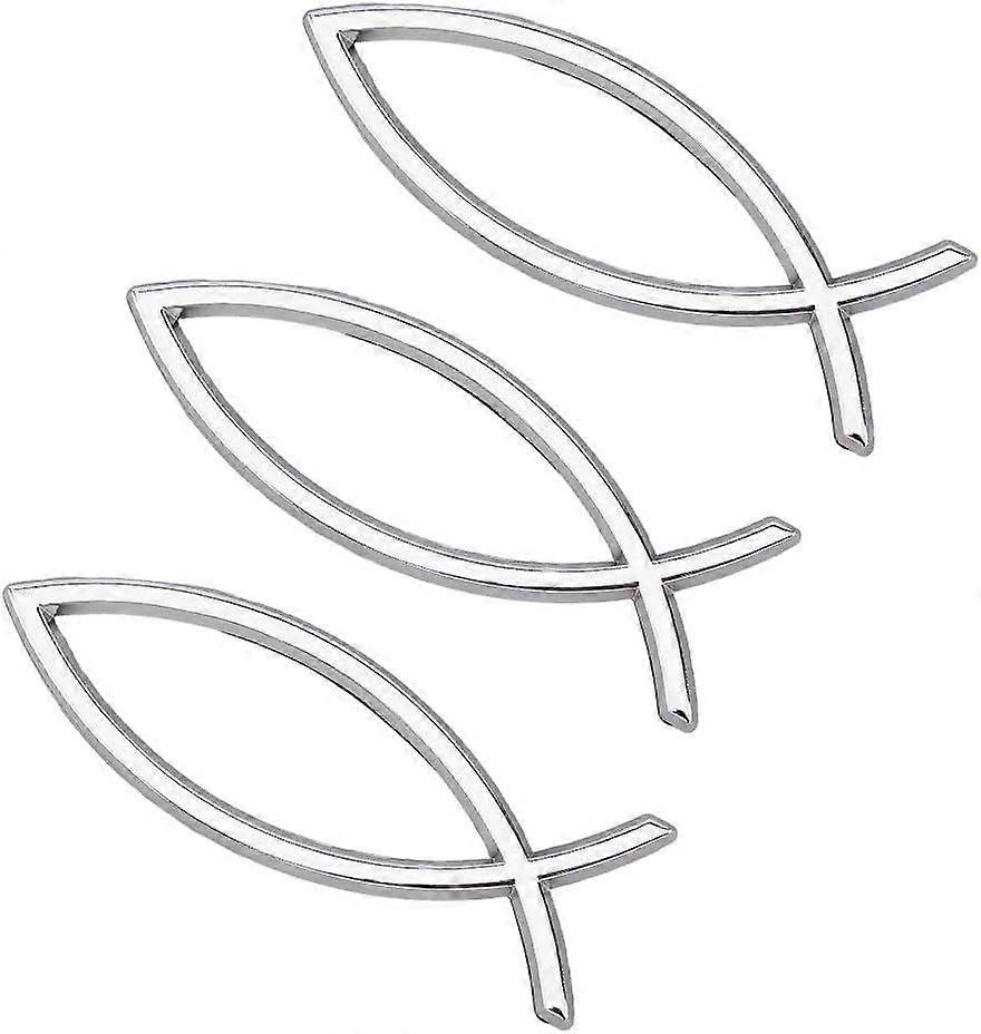 3PCS Sliver Jesus Fish Decal Sticker Fish Shape Car Sticker 14x46cm/55x18inch Plastic 3D Fish Car Decal Emblem for Car Motorcycle Trucks Walls Windows