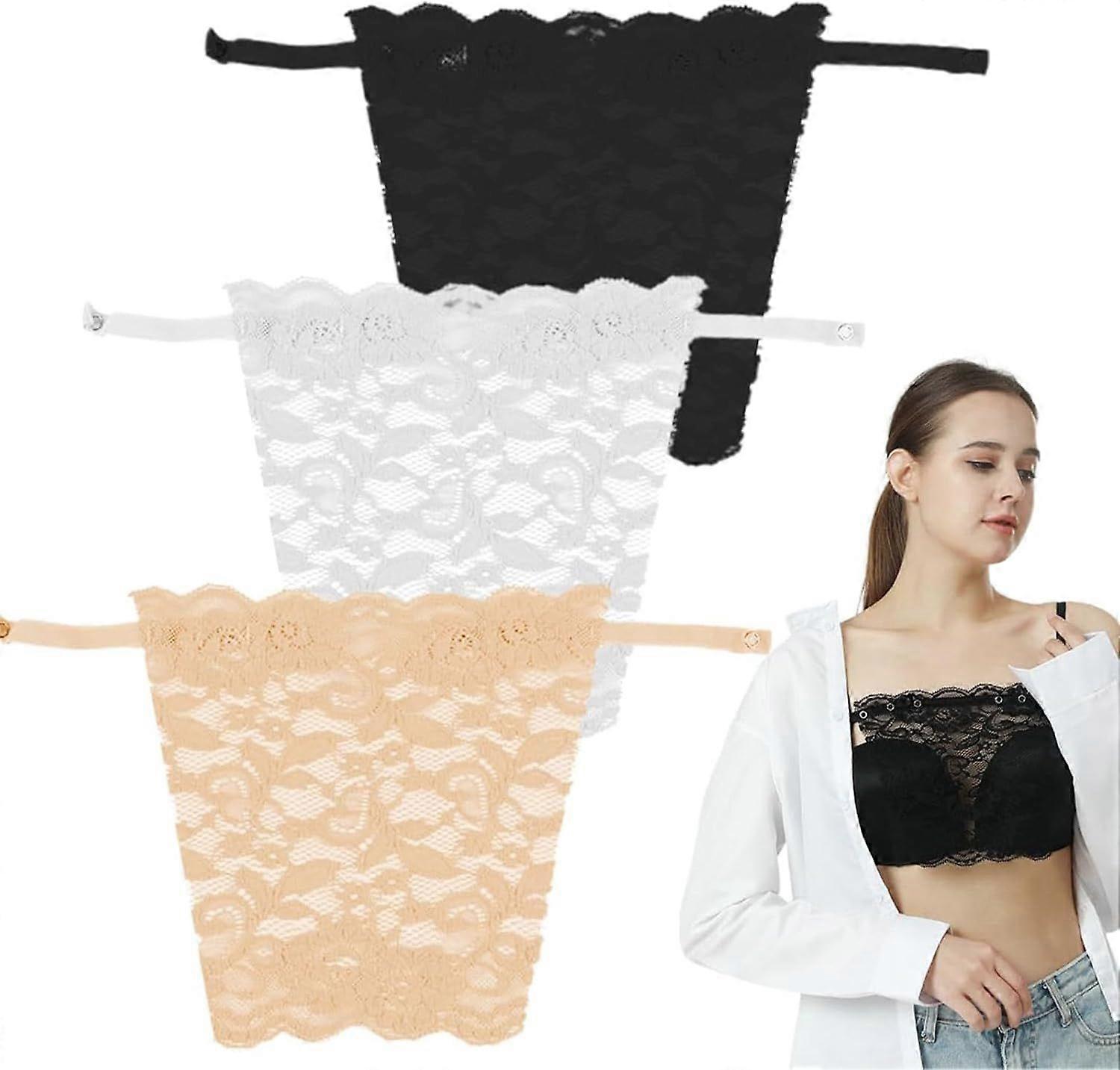 3 Pieces Modesty Panels for Low Cut Tops cleavage cover up for dresses Lady Lace Clip-On Mock Camisole Bra Insert Overlay Modesty Panel Vest Lady Lace