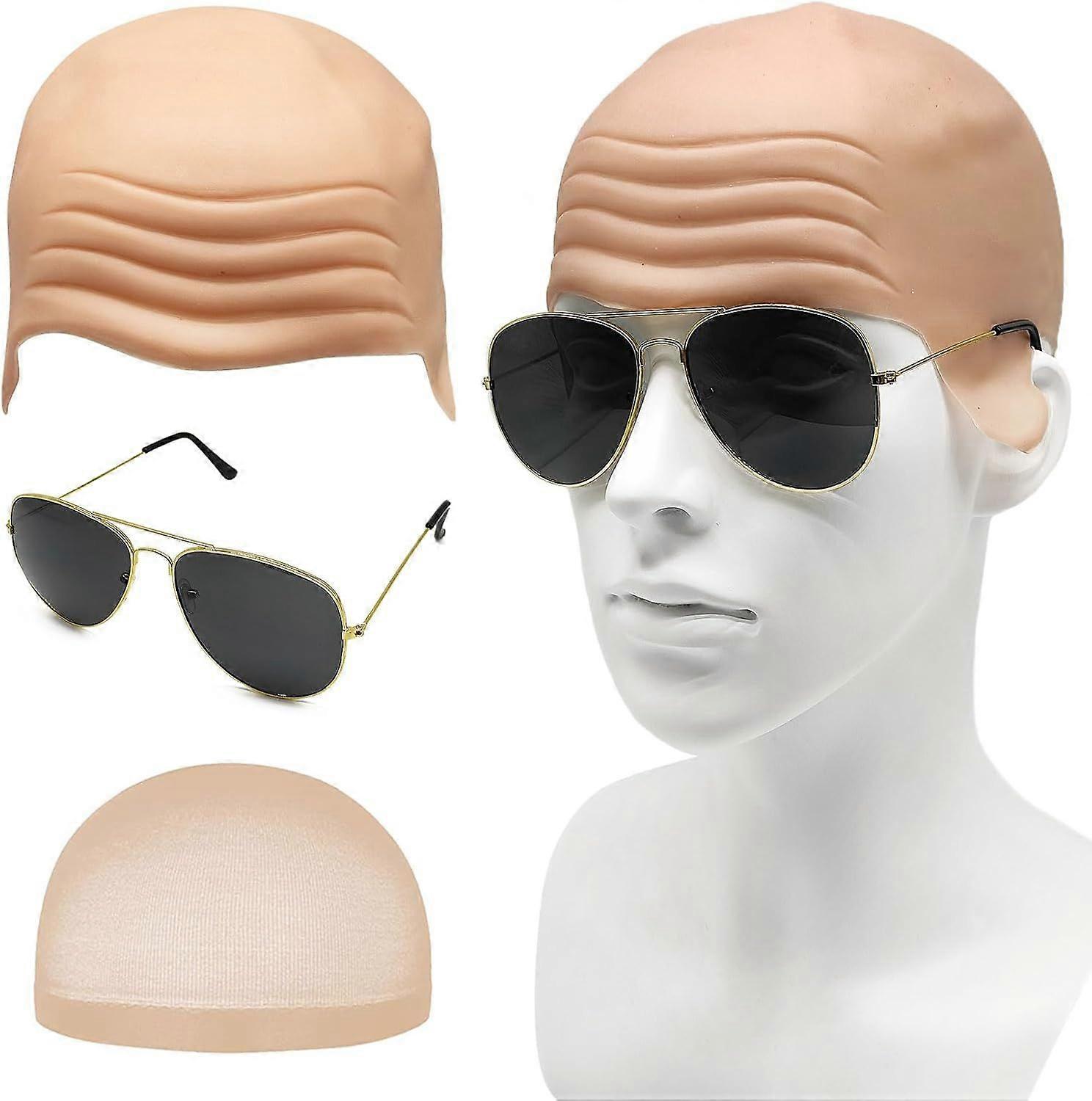 Bald Caps for Adults Men Women Costume Accessory Makeup Bald Head Wig Cap Costume Set Bald Cap Sunglasses Bald Skin Bald Head Skull Wig Cap Famous Rap