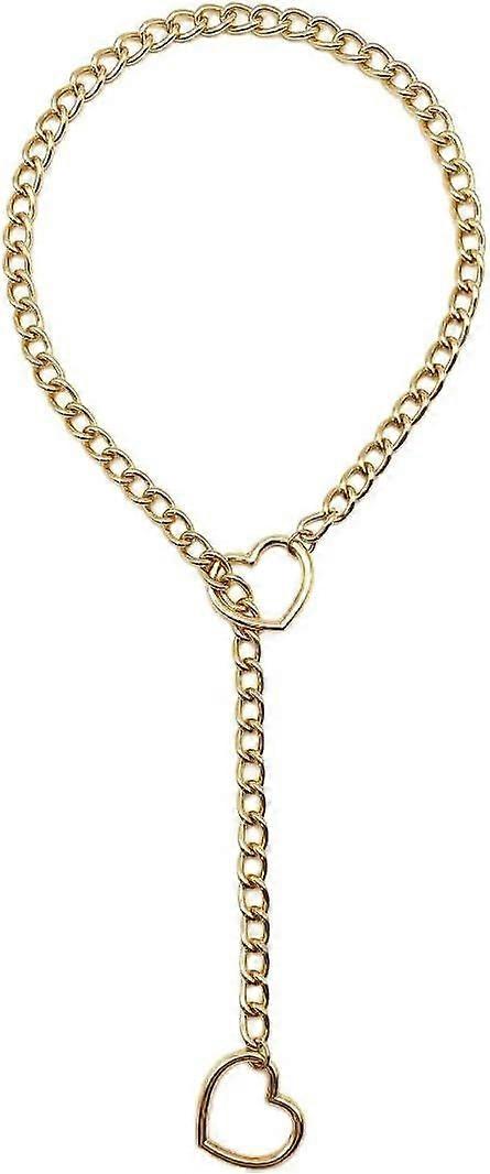 Woman Men O-ring Slip Link Chain Choker Necklace Punk Stainless Steel Silver Long Adjustable Collar Clavicle Jewelry Accessory(Golden)