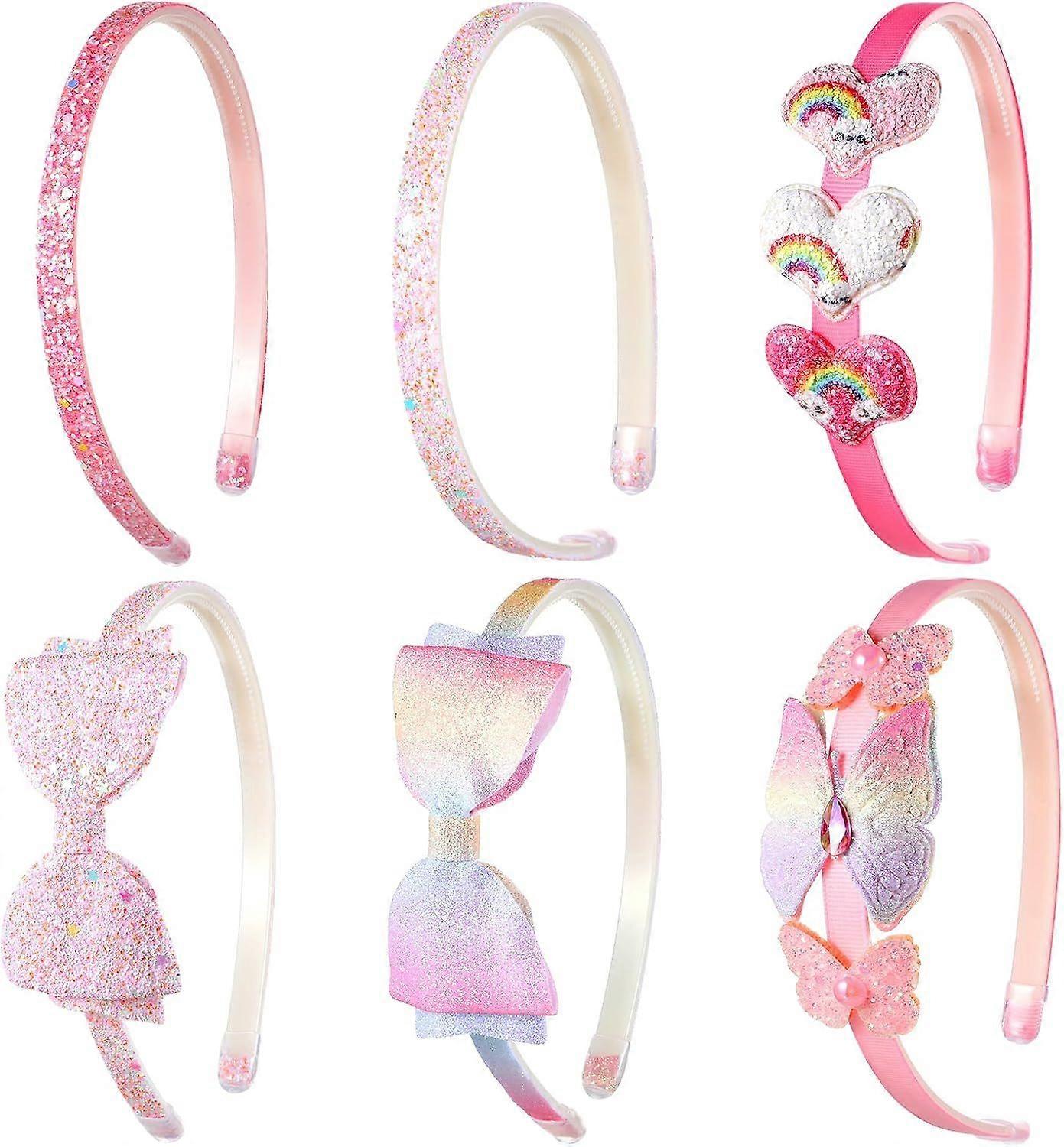 Glitter Headbands with Bow 6 Pack Toddler Hair Accessories Colorful Princess Headbands Bulk Plastic Sparkly Rainbow Butterfly Hair Accessories Bow Hea
