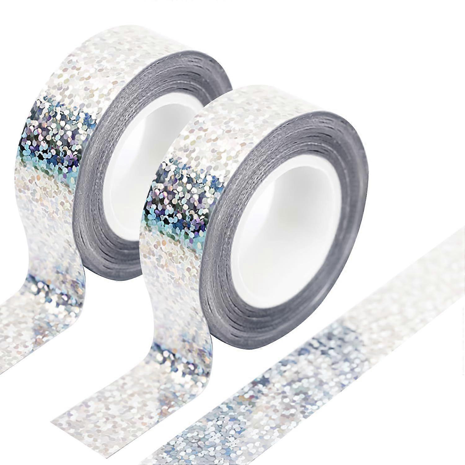 Bohue 2Pcs Solid Foil Washi Tape Decorative Self Adhesive Masking Tape Holographic Glitter Tape Scrapbook Tape for DIY Gift Wrapping Card Making Offic