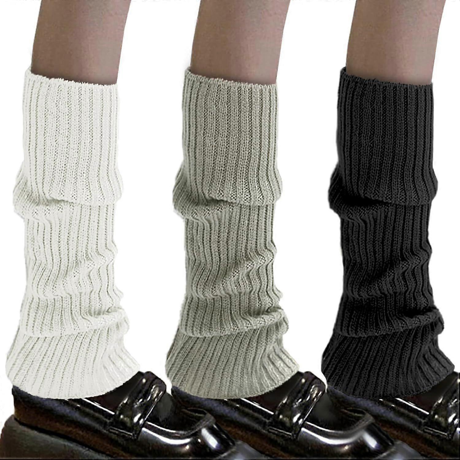 3 Pairs Leg Warmers Winter Knit Leg Warmers for Women Soft Knee Warmers Lady Long Boot Socks for 80s Party Ballet Dance Skating Yoga Sport Ice Skating