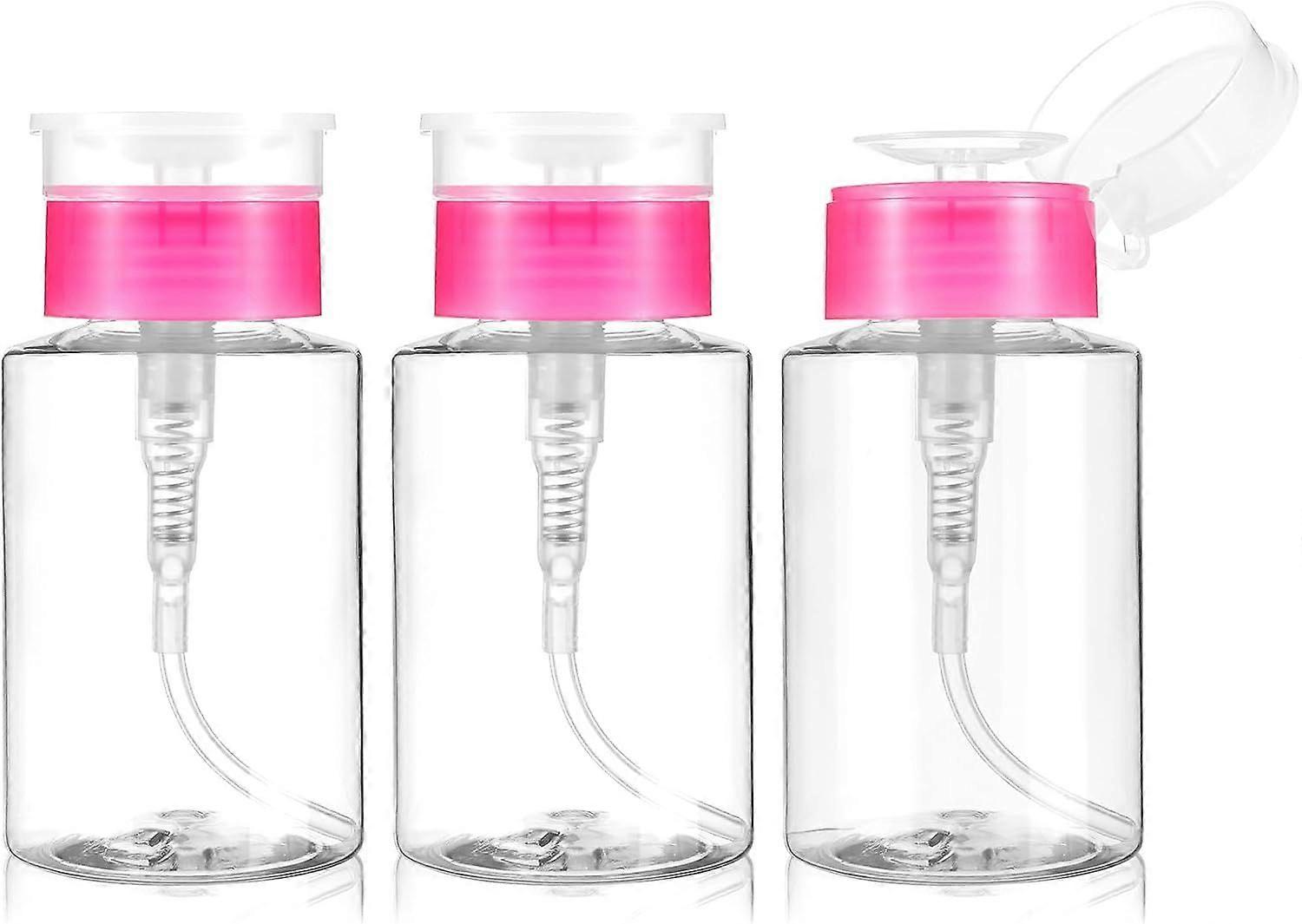 Dimeho 150ml Nail Polish Remover Pump Bottle Dispenser 3Pcs Push Down Empty Pump Dispenser Bottle Lockable Clear Makeup Acetone Containers for Alcohol
