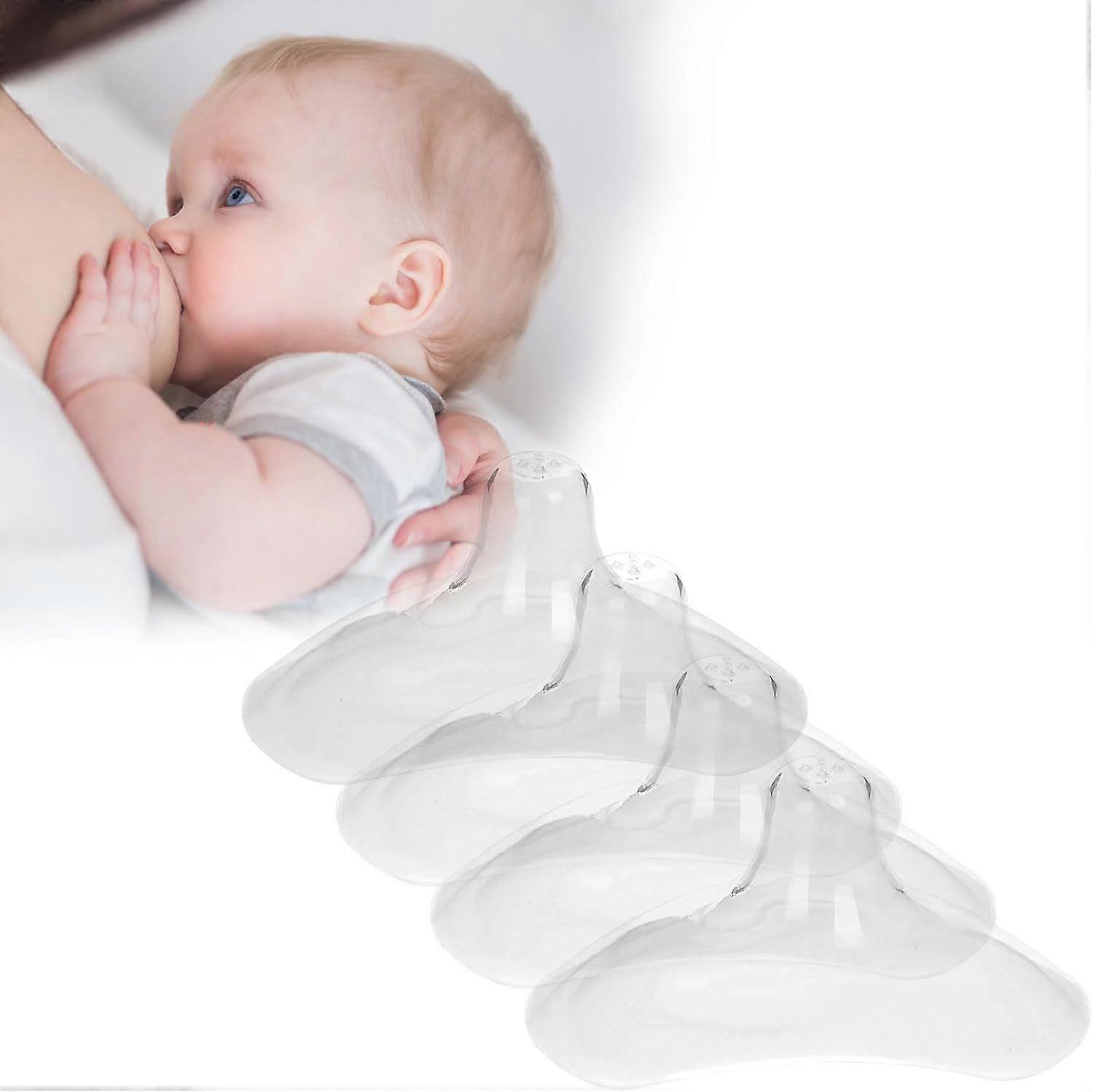 Nipple Shields for Breastfeeding 4Pcs Breast Shields for Breastfeeding -BPA Free Reusable Soft Silicone Breastfeeding Nipple Shields Guards for Newborn Baby Product description Material: Silicone Color: Colorless and transparent Size: 70mm long, 20mm wide Packing list: 4 Nipple Shields Description Structure: Our nipple shields for breastfeeding can adapt to different breast shapes and sizes, providing nursing mothers with the necessary support and comfort, making the breastfeeding process smoother. The semi-circular shape and soft silicone material of our breast shields for breastfeeding provide a gentle and comfortable fit for newborns and mothers. Our nipple shield is made of soft and flexible silicone, ensuring comfortable and gentle contact with the baby's skin during breastfeeding. The breast shield is easy to clean and maintain. The silicone structure of this nipple shield is easy to wash and dries quickly, ensuring they are always ready to use. The breastfeeding nipple shields protect the nipples when sucking is difficult or painful and help the baby suck more easily, thus achieving breastfeeding. Our nipple guards breastfedding provide protection for sore or sensitive nipples, allowing mothers and babies to enjoy a more relaxed and enjoyable breastfeeding journey.
