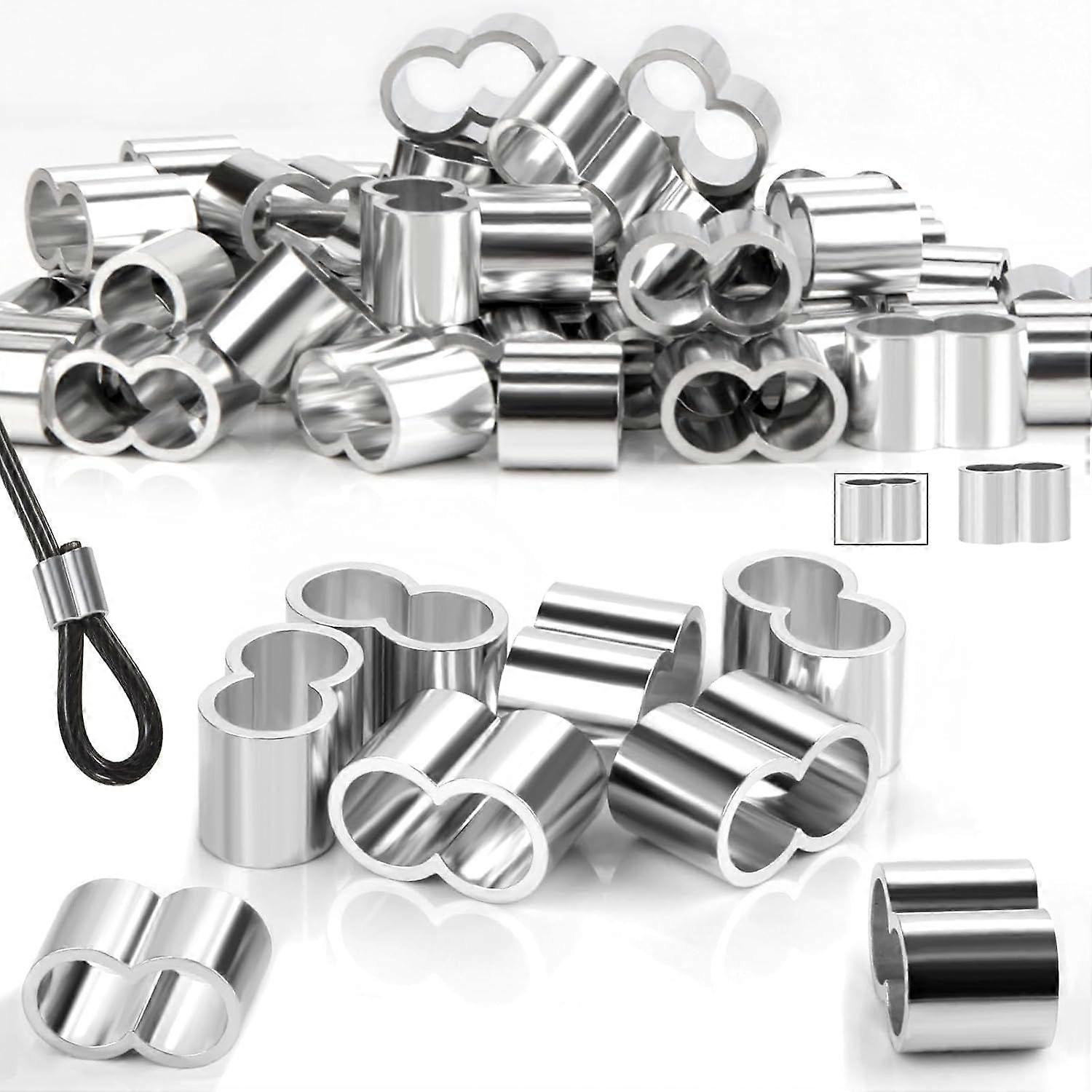 6mm Wire Rope Crimping Sleeves Aluminum 50pcs Cable Crimps Sleeves Clip Wire Clamp Fittings for 5mm/6mm Wire Rope Bungee Cord Elastic String