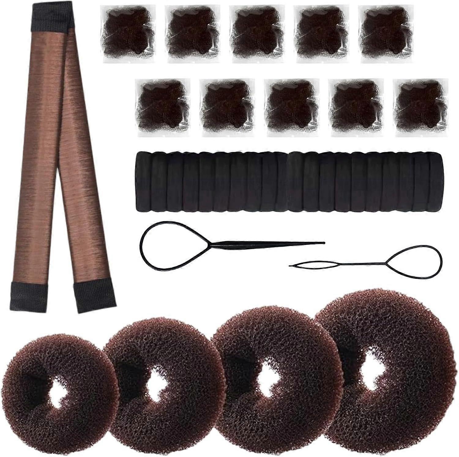 KEYRI 37 PCS Hair Bun Maker Set Hair Donut Brown Hair Nets for Buns Hair Bun Shaper for DIY Hair Styles Hair Braider Gadgets for Women Hair Braiding K