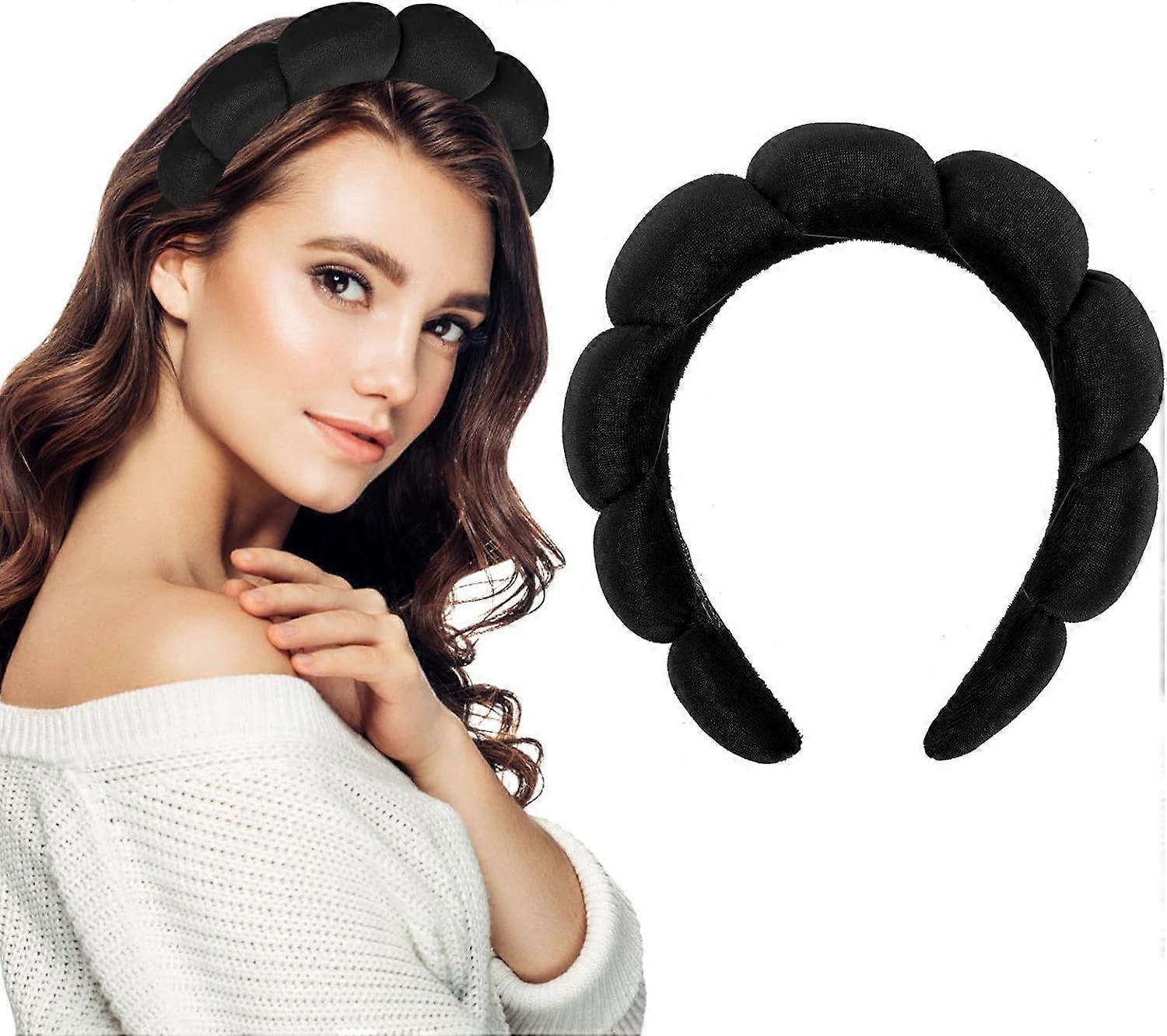 Spa Makeup Headband for Women Sponge Skincare Headband Soft Terry Cloth Fabric Hairband Hair Accessories for Washing Face Makeup Removal Shower Skincare (Black) Product description Product description Features: Upgrade your daily skincare routine with our makeup headband for washing face! This soft and stretchy makeup headband is designed to keep your hair away from your face while you cleanse, apply makeup, or do face masks. The hair band has a cute appearance and practical functions, soft and gentle on the skin. It fits snugly around your head without being too tight or leaving marks on your forehead. Specification: Headbands Material: High-quality sponge and towel fabric Head Band Size:4.53X 5.7inches Hair Band Color: Black Multiple Uses: Can be used for face washing, makeup application, and facial treatments. Package includes: 1x face wash headband Directions Wrap the headband around your head to hold hair away from face while washing, applying makeup, or using face masks.