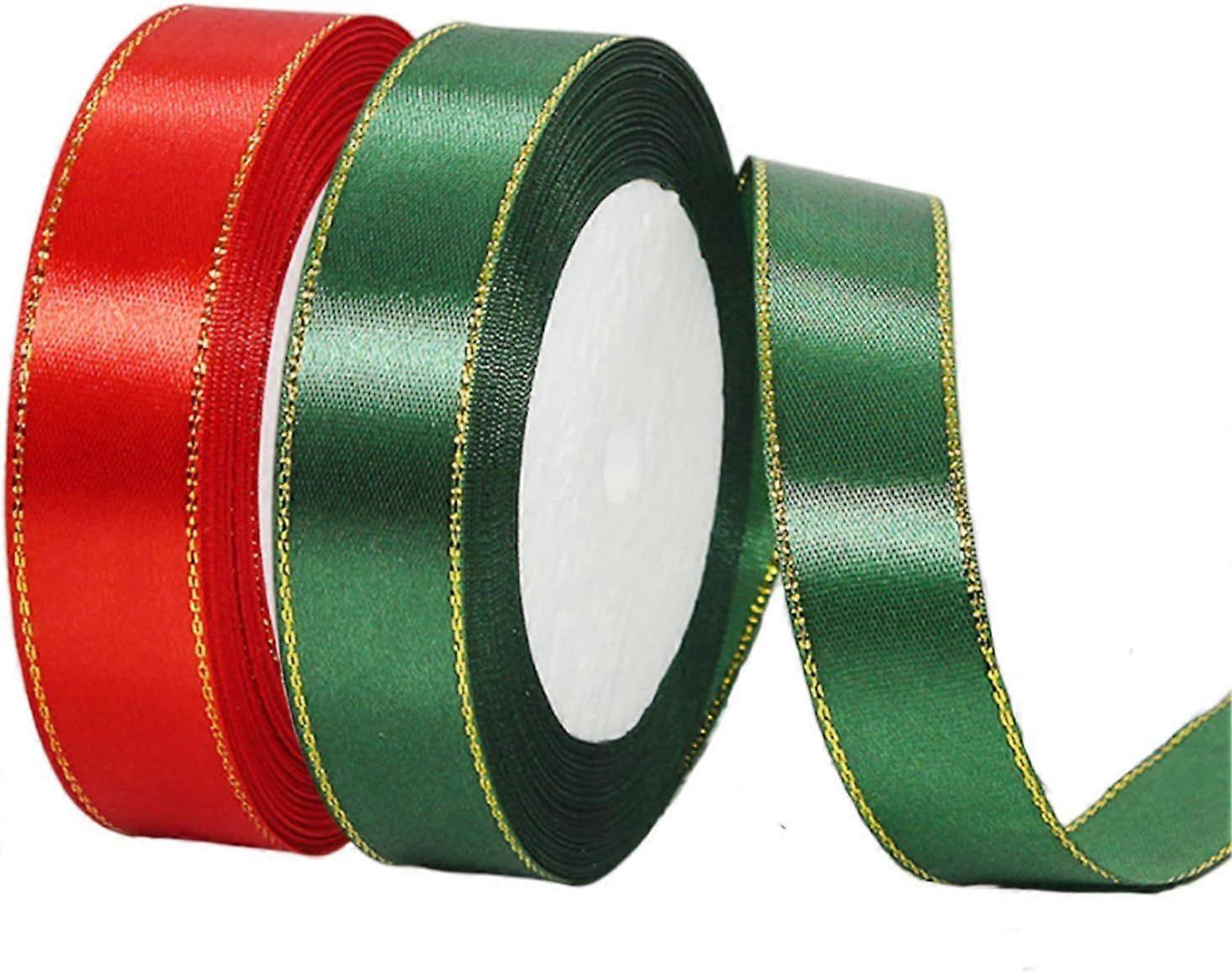 2 Rolls 20mm x 22m Green/Red Satin Ribbon with Gold Rim Double Sided for Crafts DIY Wrapping Wedding Decoration