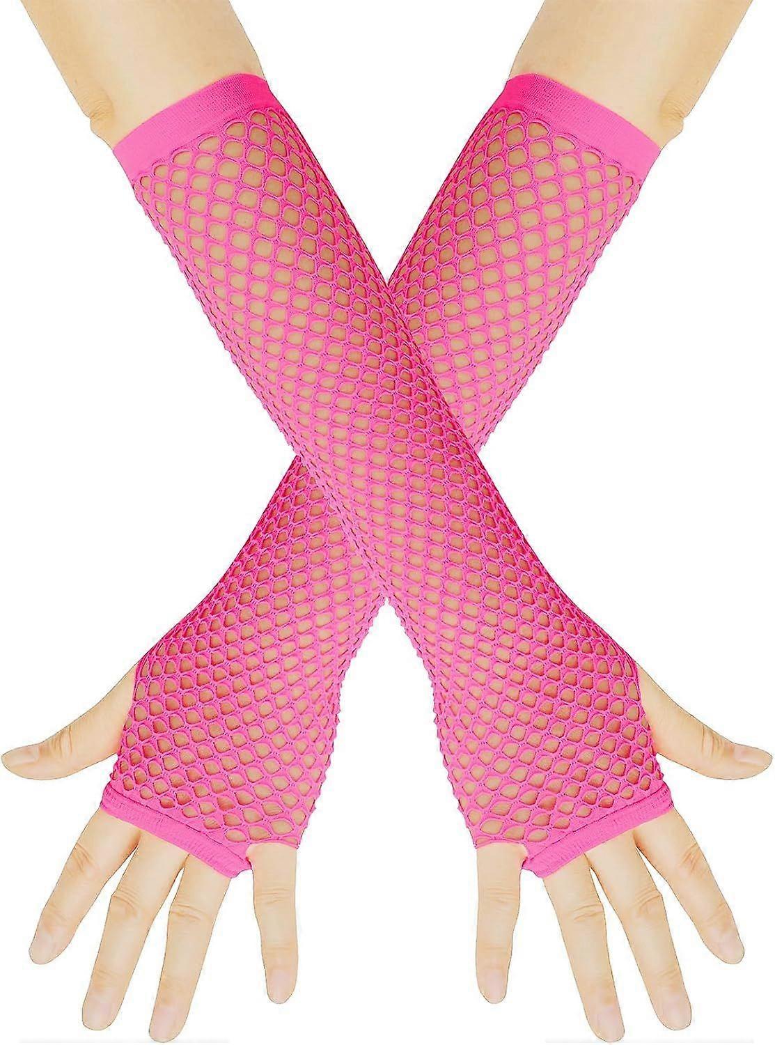 HLMYER Retro Pink Fishnet Gloves Fashion Elastic Pink Fishnet Arm Sleeves Mesh Pink Fingerless Gloves Long Fishnet Gloves Fingerless for Women and Men