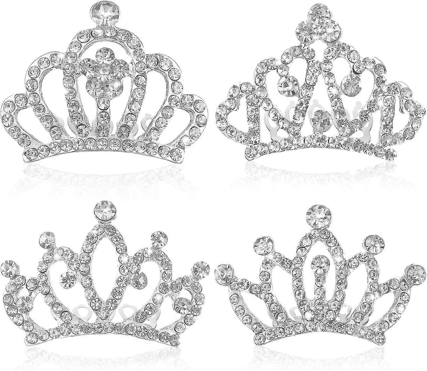 minkissy 4pcs Crown Comb Hair Clips for Girl - Medium Crown Hair Clips Combs for Kids Mini Tiara Hair Clips Small Crown Hair Comb Alloy Rhinestone Cro
