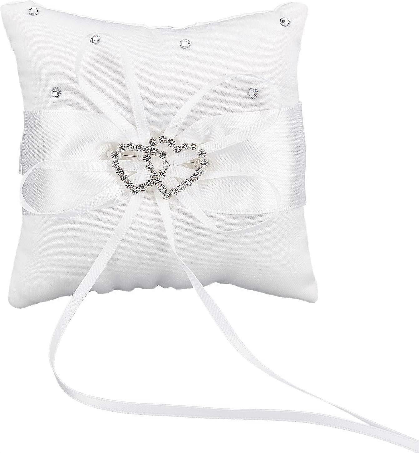 CRASPIRE Wedding Ring Bearer Pillow 10x10cm Ring Cushion Ring Holder Marriage Couple Bowknot White Bow knot with Rhinestone Diamonds Double Hearts for