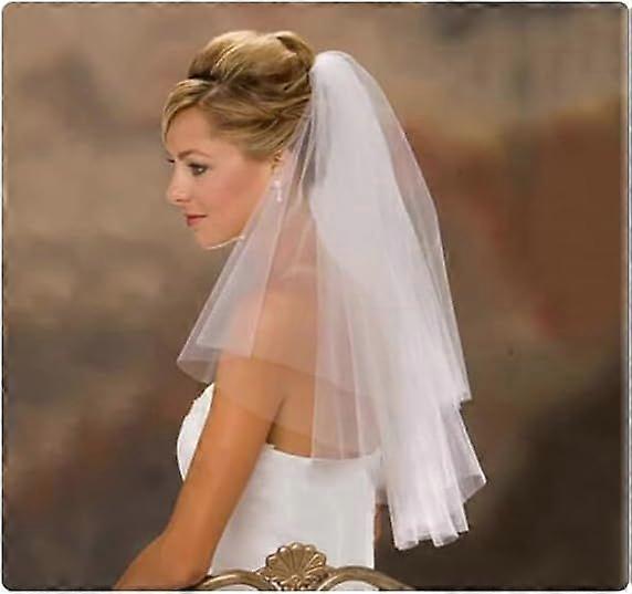 Wedity Wedding Bridal Veils 2 Tier White Bridal Tulle Elbow Fingertip Length Cut Edge Veil Bride Hair Accessories with Comb