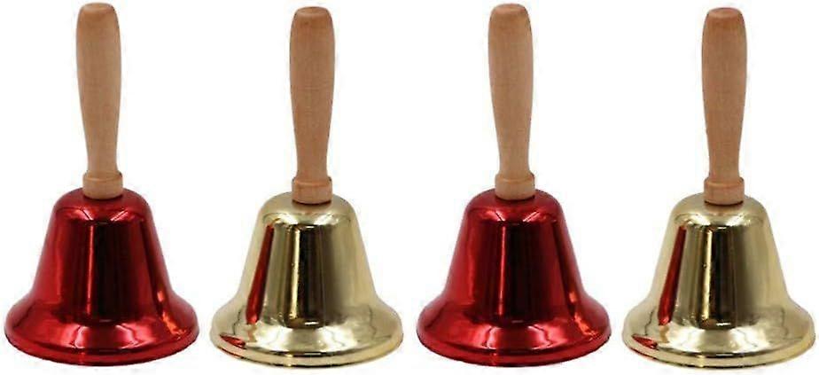 PRETYZOOM Christmas Hand Bell With Wood Handle - Metal Call Bell for Calling Attention and Assistance - Kids Gift (2 Golden + 2 Red)