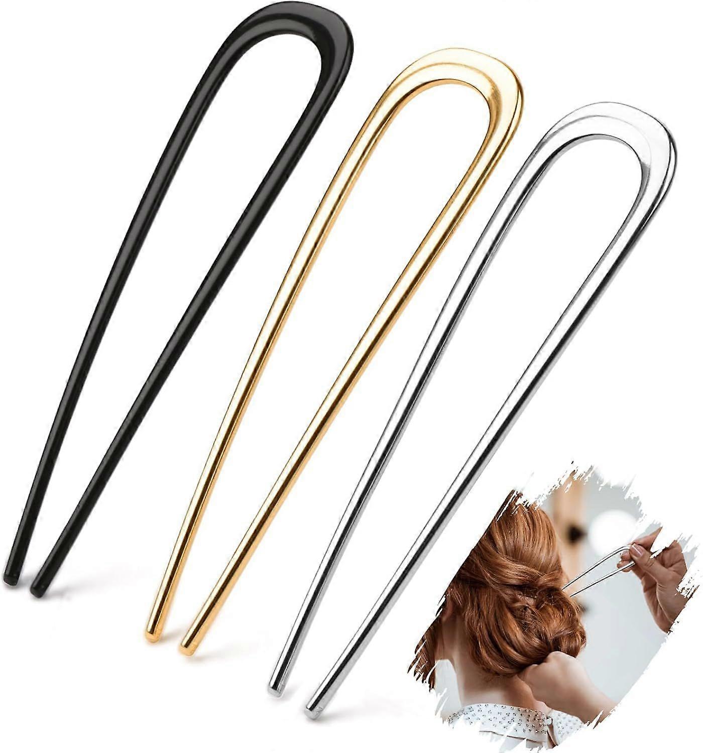 3Pcs French Hair Pin Metal 14cm/55in French Pin French Twist Hair Pin U Shaped Hair Fork Gold Silver Black Hair Pins Large Updo Hairpin for Women Girl